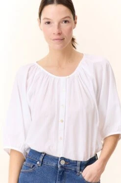 La blouse Clive Pint séduit par son charme intemporel et ses détails délicats. Avec son plastron plissé surpiqué et ses manches amples volantées, elle incarne une élégance romantique et féminine. Idéale pour la femme Leon & Harper, elle apporte une touche raffinée et légÚre à toutes vos tenues.