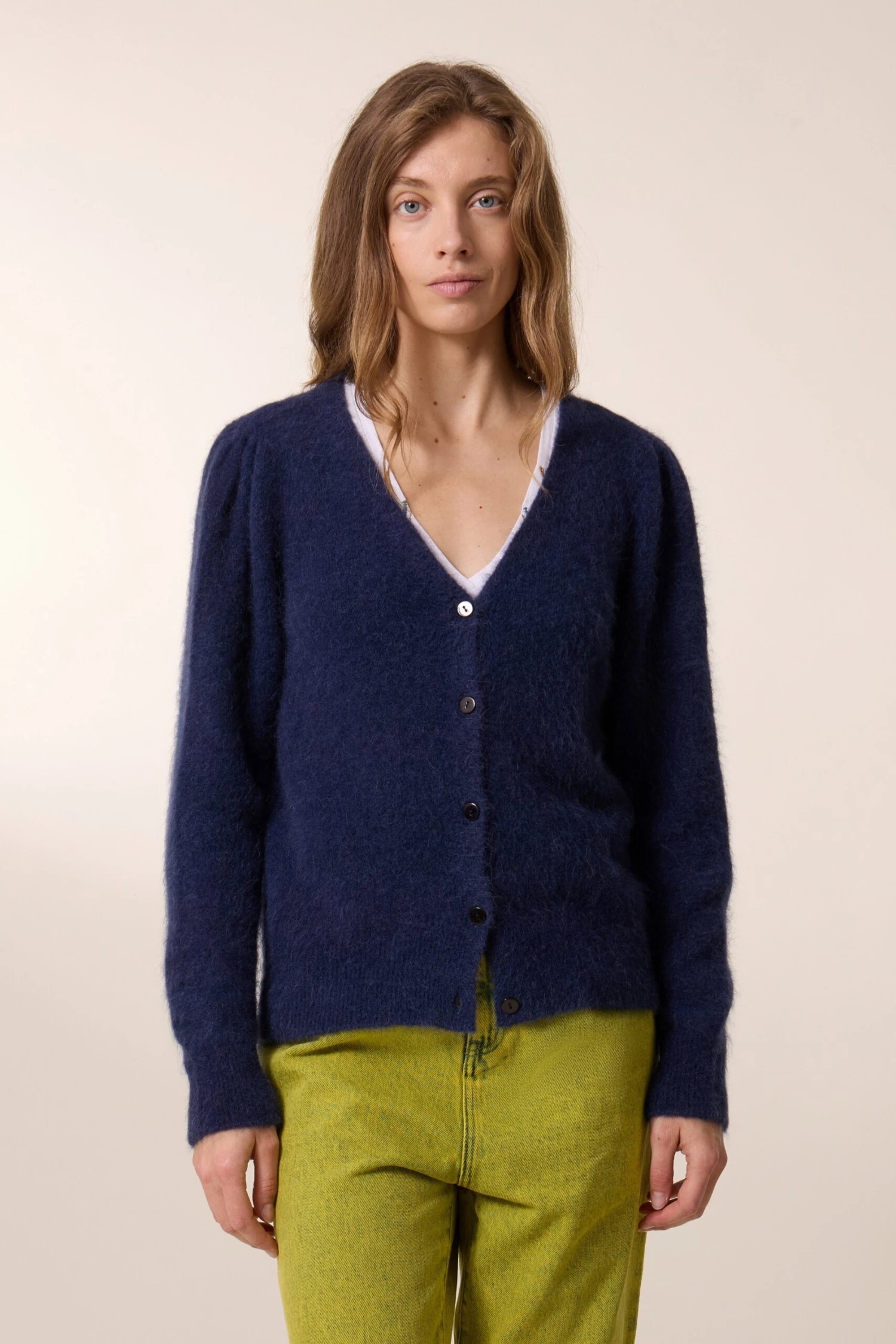 Le cardigan Mad PLN fait partie des essentiels du dressing de la femme Leon & Harper. Ses épaules froncées lui apportent une touche de romantique.