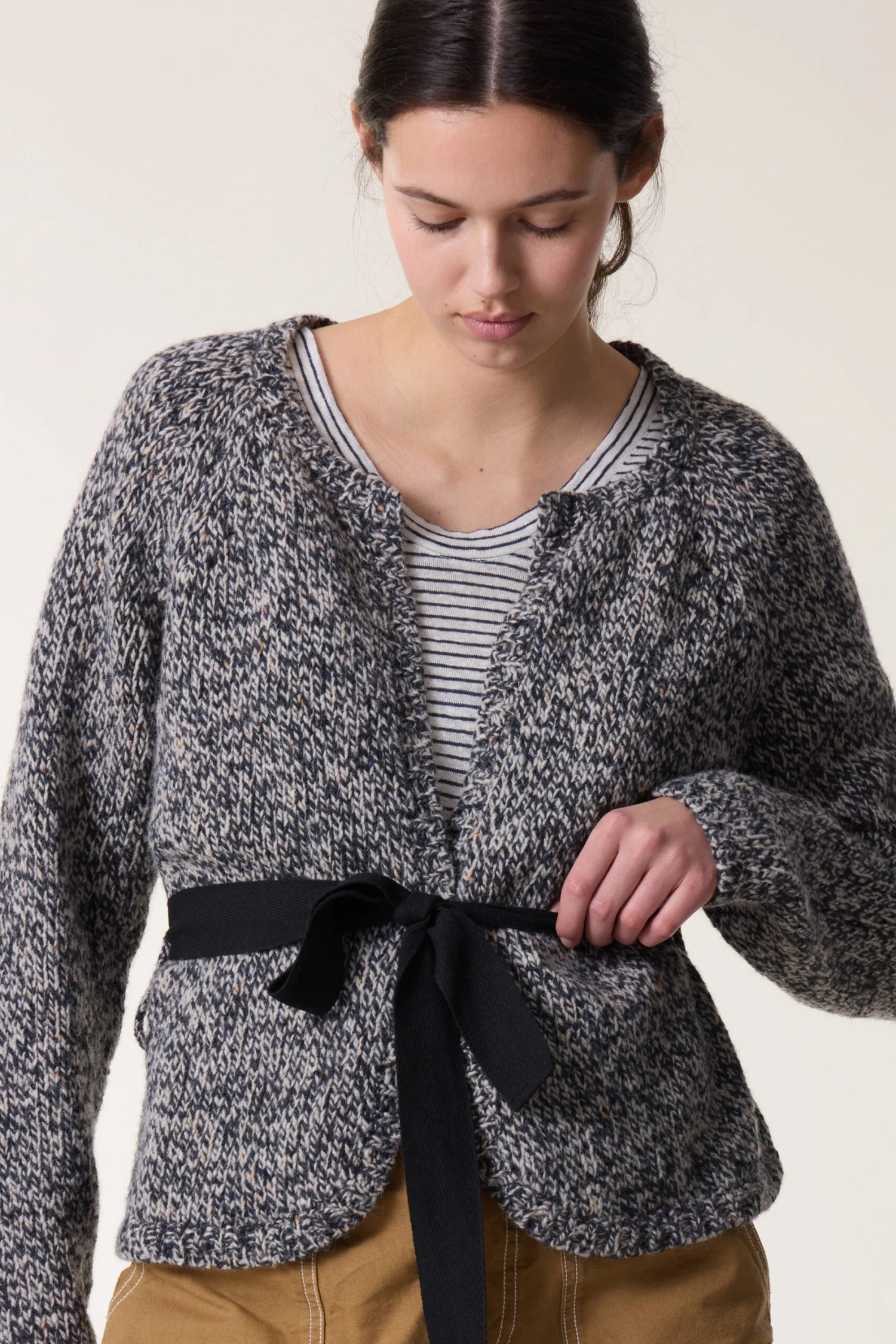 Le cardigan Merle Mix est une jolie pièce en maille pour le début de la saison. Avec sa ceinture, il permet de souligner la taille de la femme Leon & Harper pour une silhouette féminine.