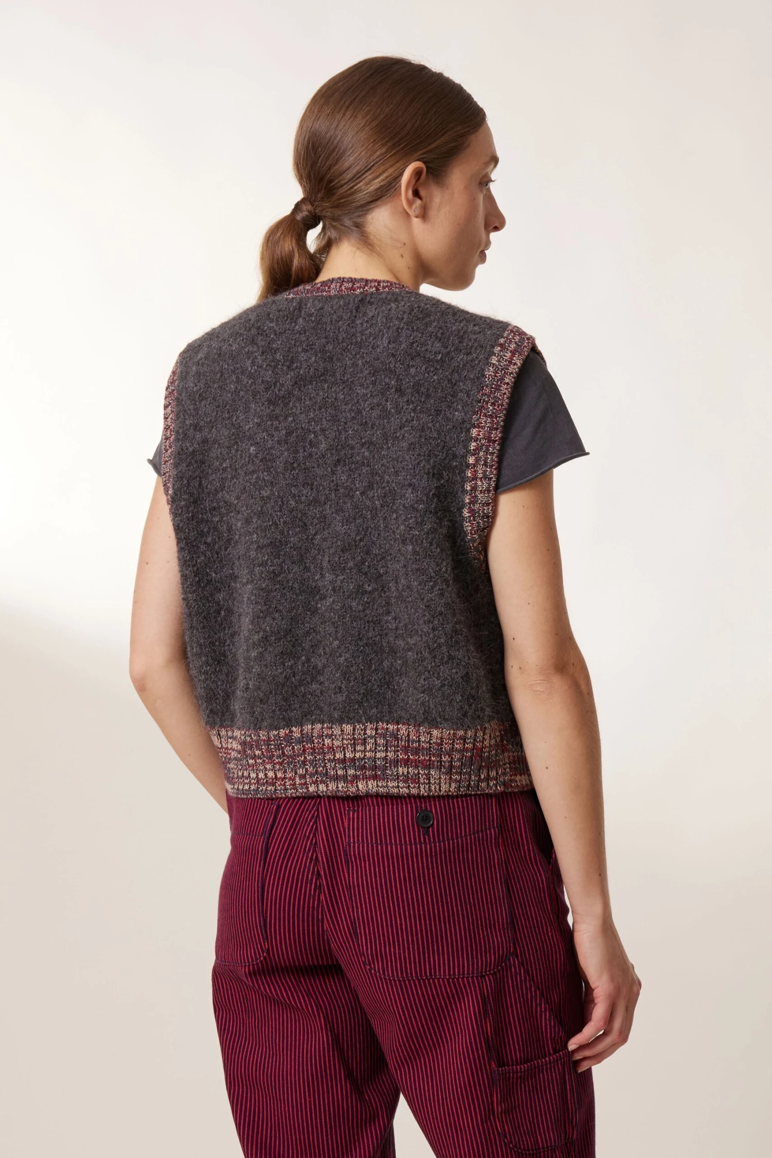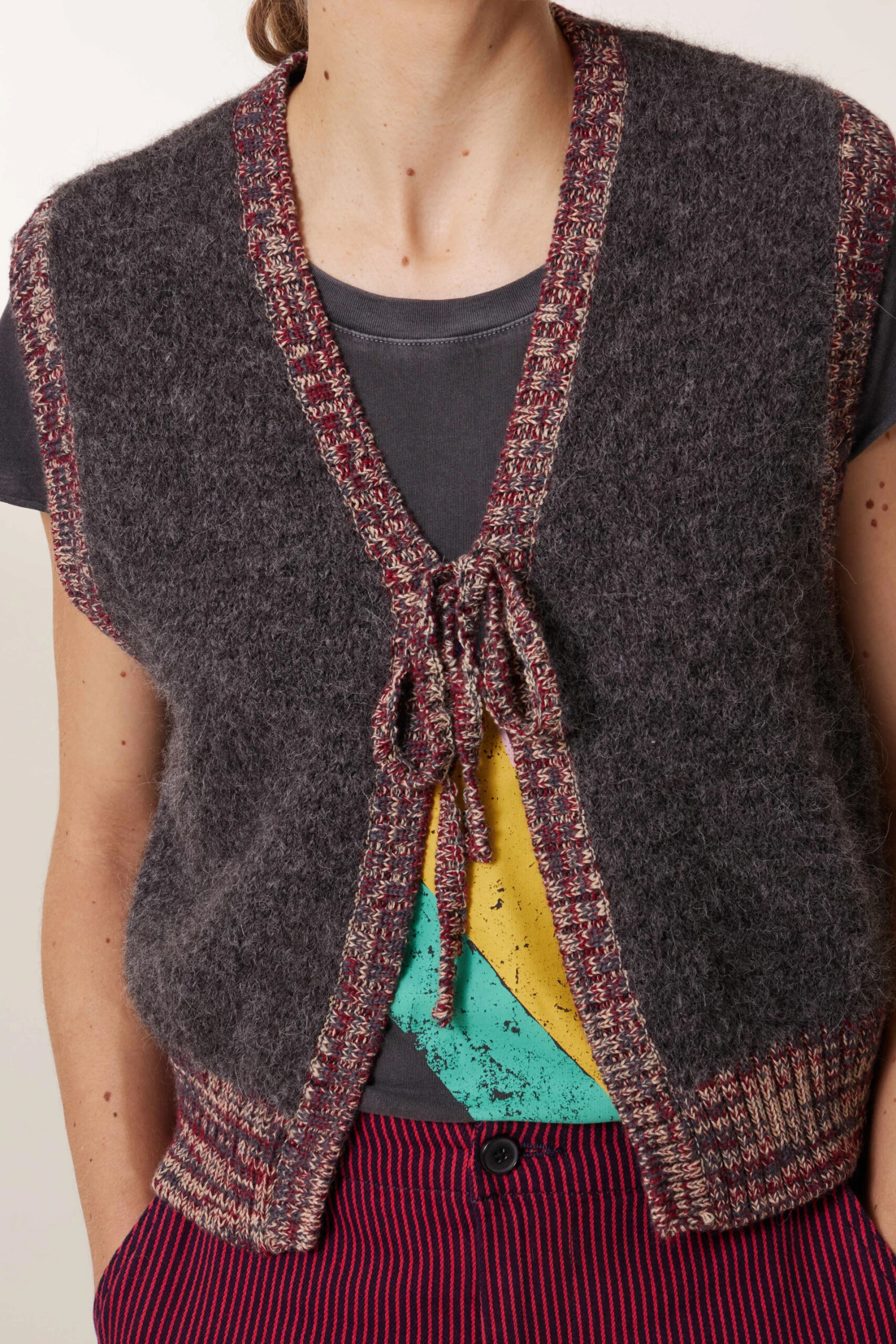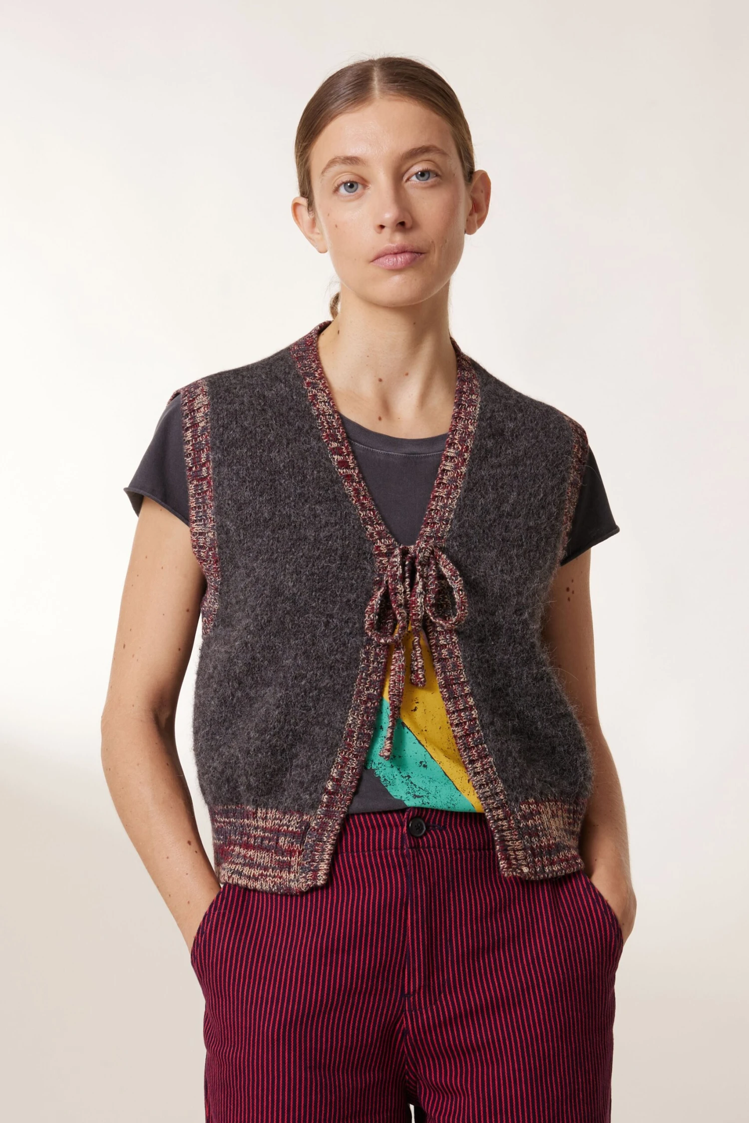Le gilet sans manches Milly PLN offre un style authentique et décontracté. Il se distingue par ses bords côtes colorés et complète parfaitement le vestiaire de la femme Leon & Harper.