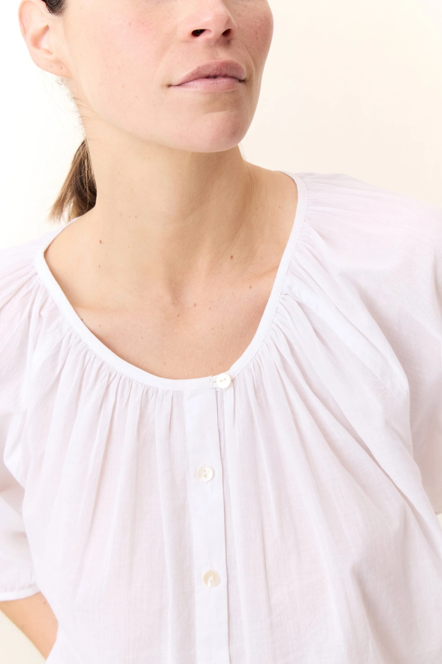 Avec sa coupe fluide et ses manches ballons, la blouse Cool Pleat offre une élégance naturelle et décontractée. Ses plis délicats ajoutent une touche de sophistication. La femme Leon & Harper la porte rentrée dans un pantalon taille haute ou ouverte sur un débardeur pour un look estival et romantique.