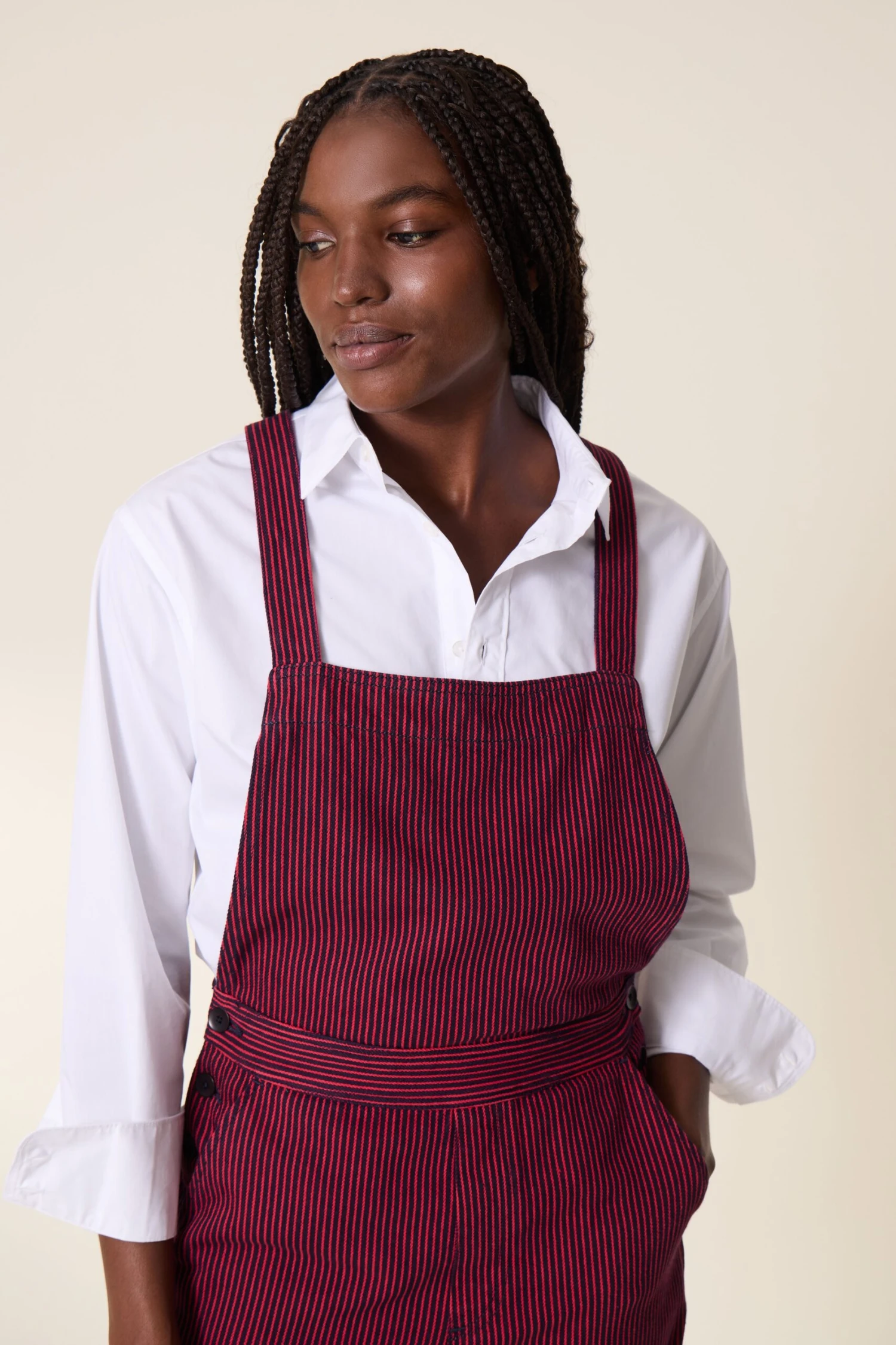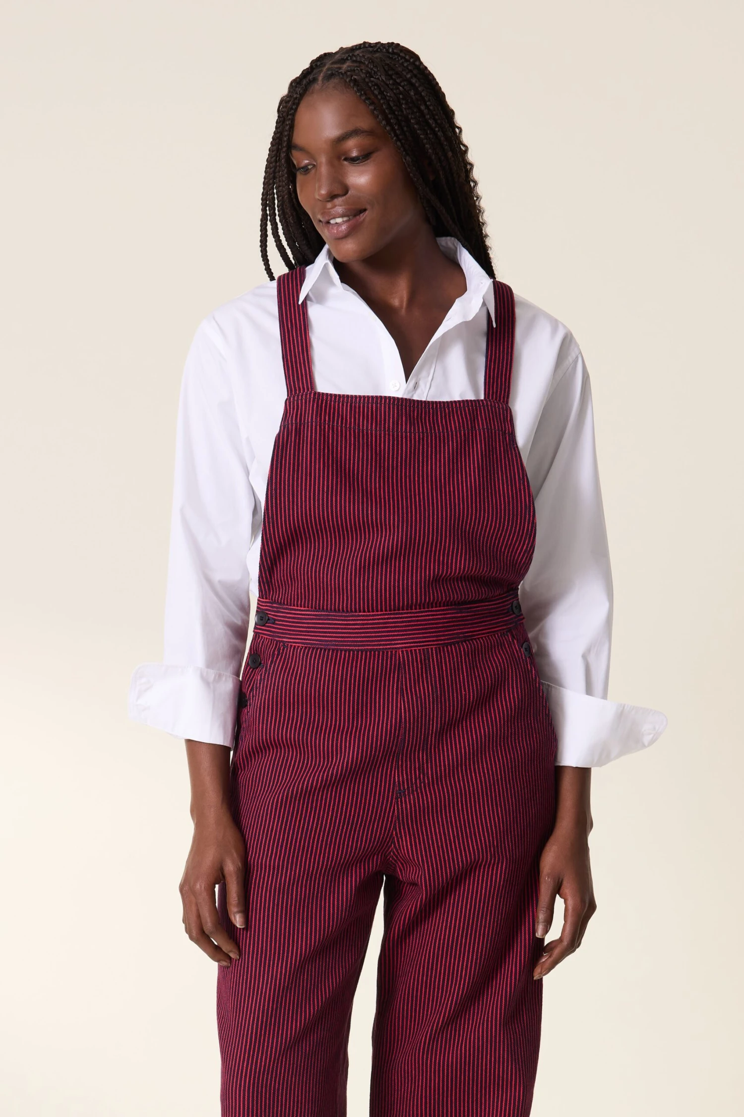 Avec son imprimé rayé et sa coupe droite, la combinaison Olivio PLN apporte une inspiration vintage. La femme Leon & Harper joue la superposition avec un t-shirt ou une maille en dessous et une veste au-dessus pour rester au chaud cet hiver !