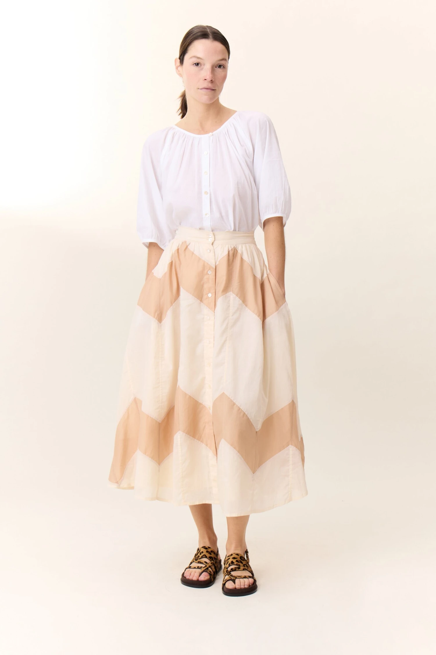 La jupe Jerem Patch joue avec les volumes et les motifs pour offrir une allure féminine et audacieuse. Ses empiècements de motifs chevrons ajoutent une dimension graphique unique, tandis que sa coupe fluide sublime avec finesse le mouvement aérien. Une pièce incontournable pour les femmes Leon & Harper en quête d’originalité.