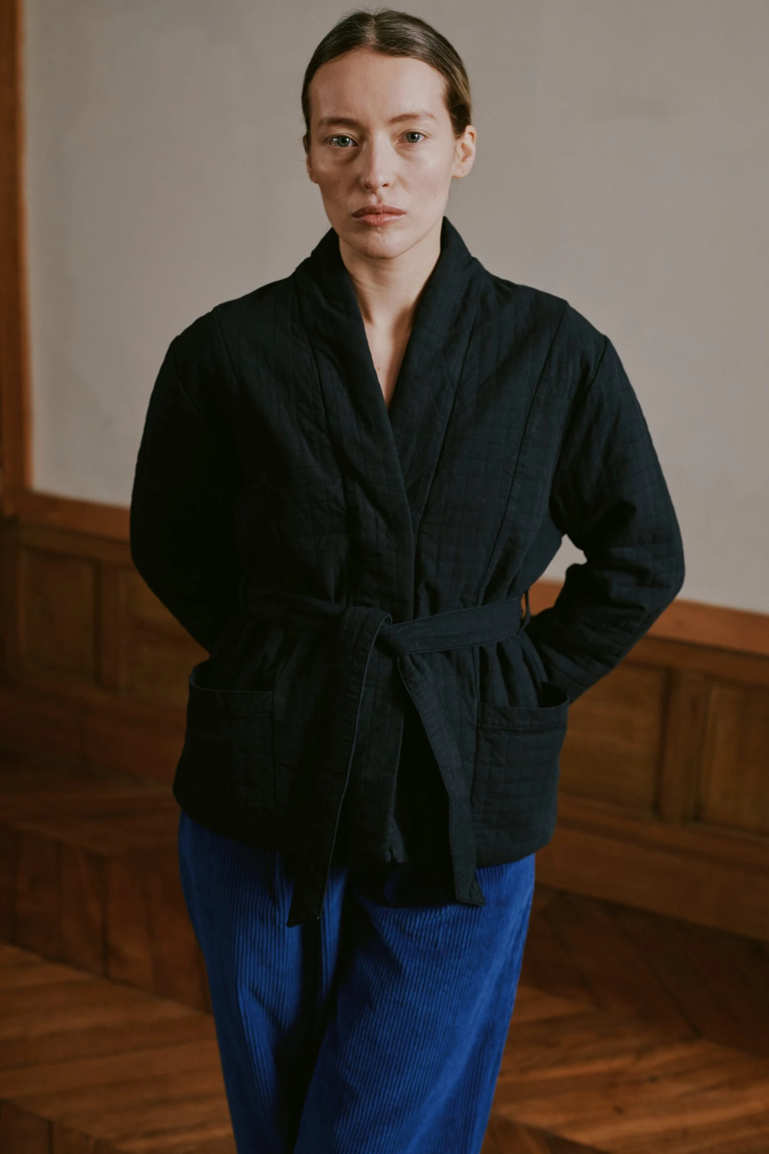 Cette saison, le Kimono matelassé Vertu PLN s’impose comme un indispensable du vestiaire de la femme Leon & Harper. Il allie style et confort pour une allure intemporelle et moderne.