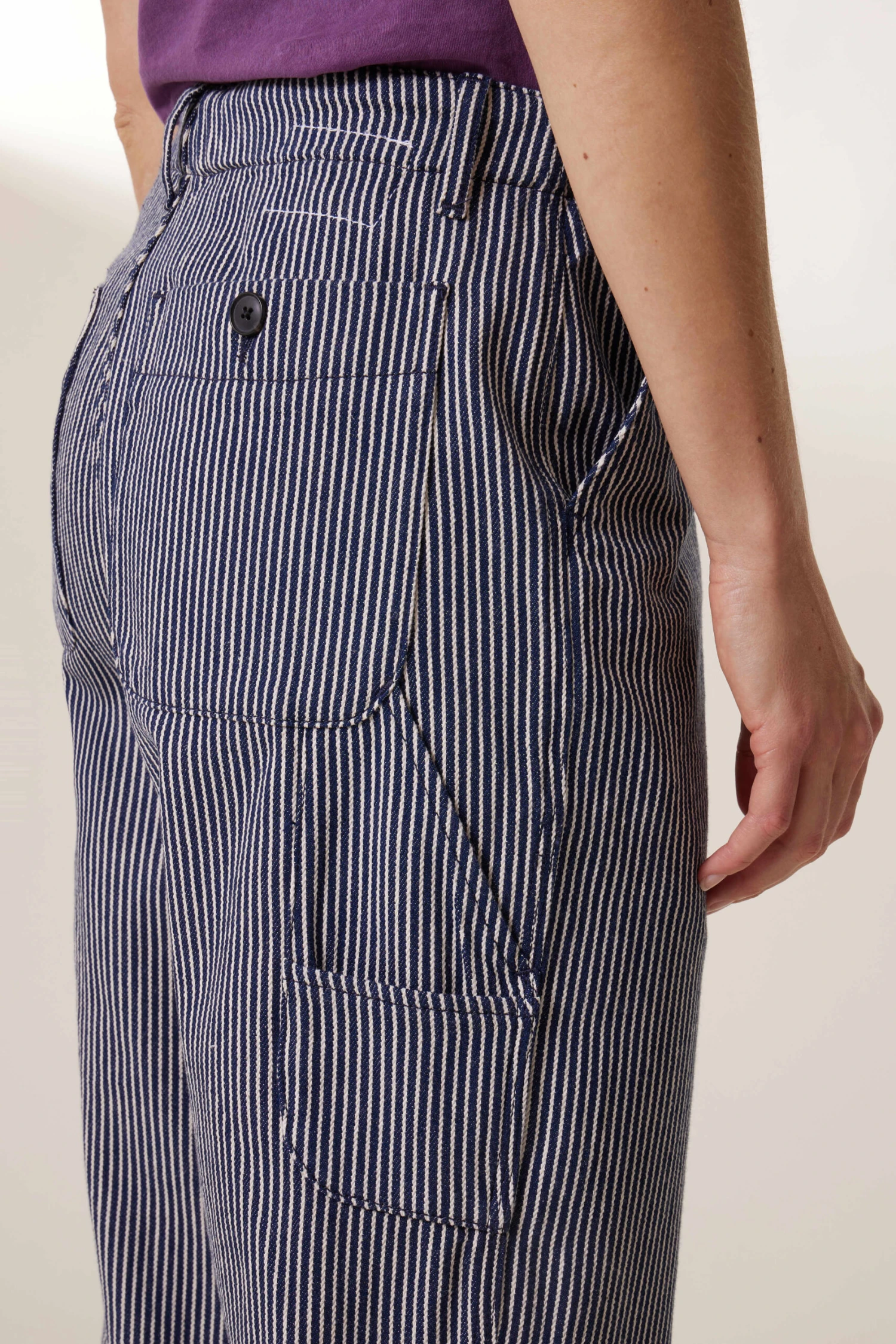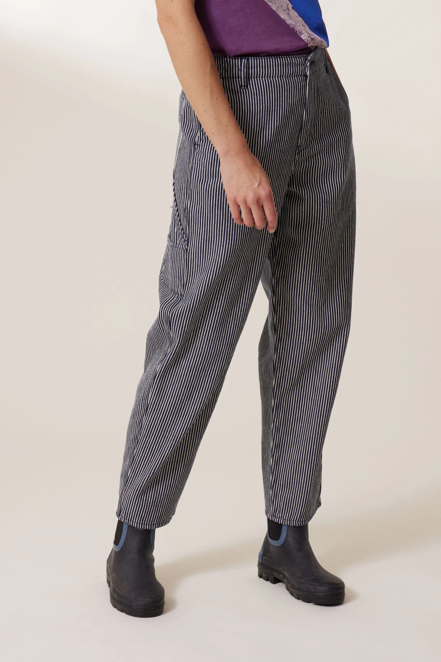 Le pantalon Armina PL3 est un intemporel du vestiaire. Ses rayures et sa coupe légÚrement loose à porter avec des revers, donnent à la silhouette un esprit décontracté. La femme Leon & Harper ose le total look ou le dépareille selon ses envies.