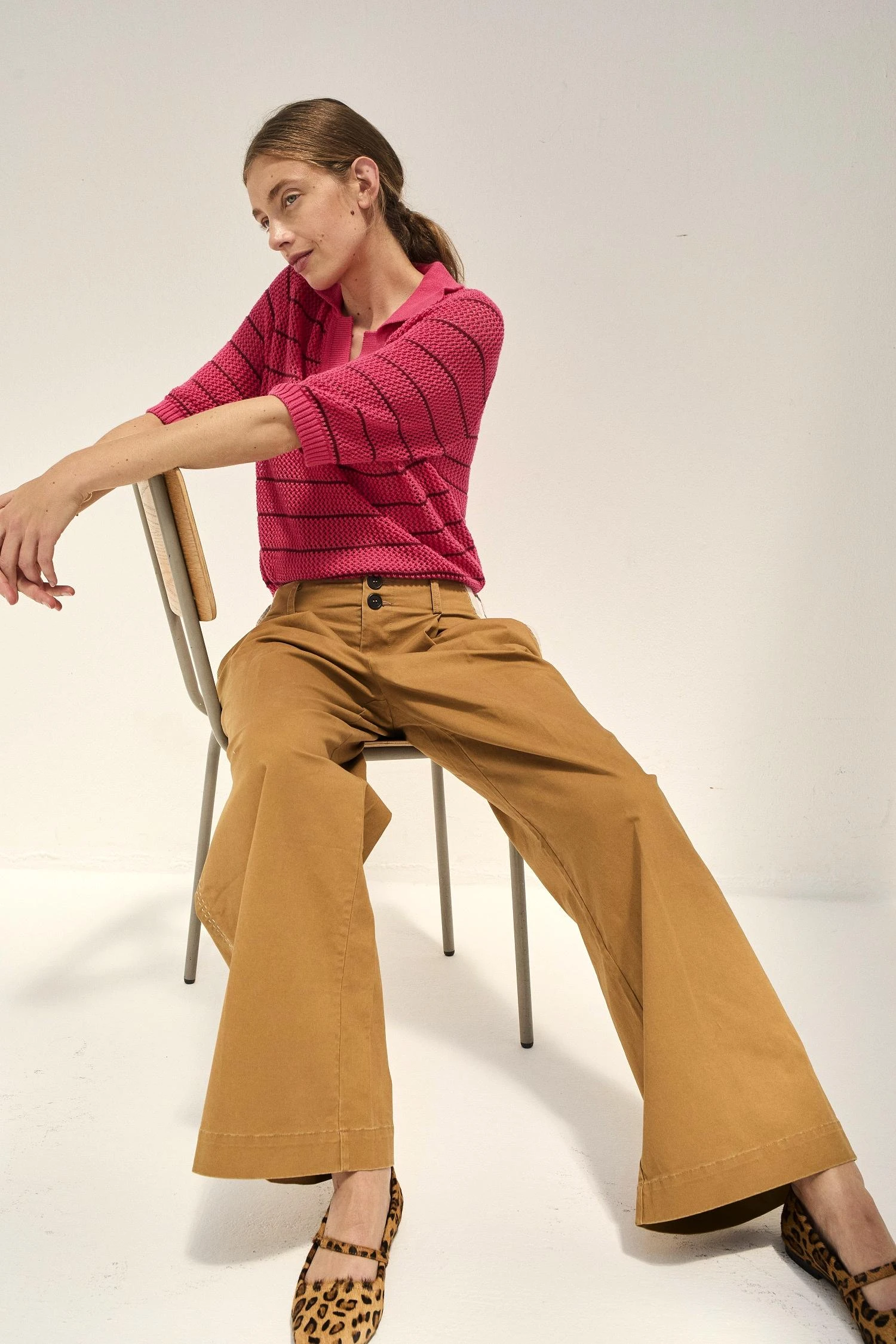 Cette saison, le polo Make Strp revisite les codes classiques du polo en adoptant un imprimé marinière. Confectionné à partir d’une maille légère et colorée, il apporte une allure sportive et vitaminée au vestiaire de la femme Leon & Harper.