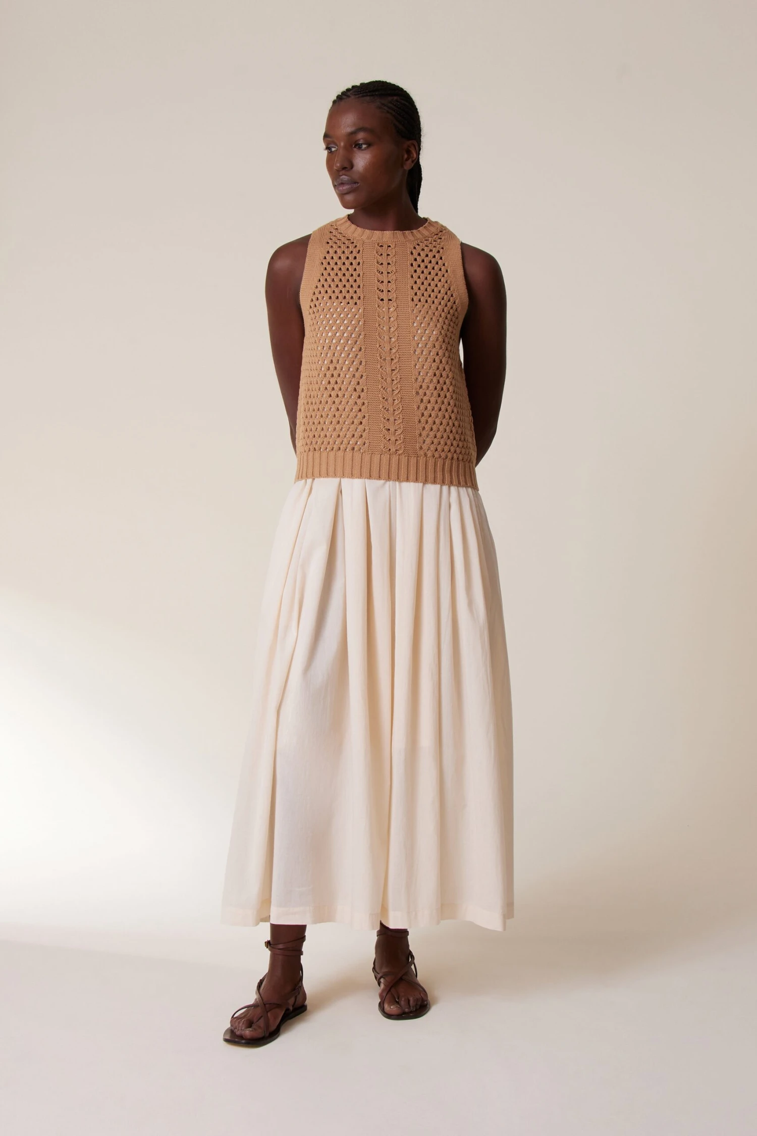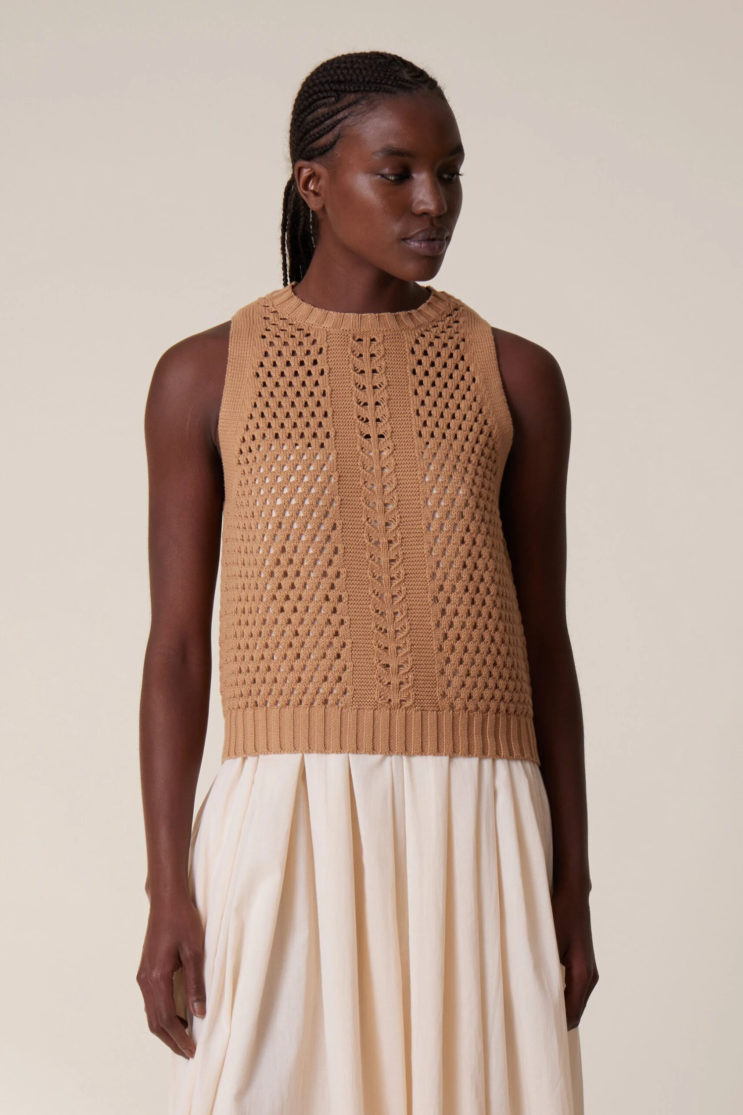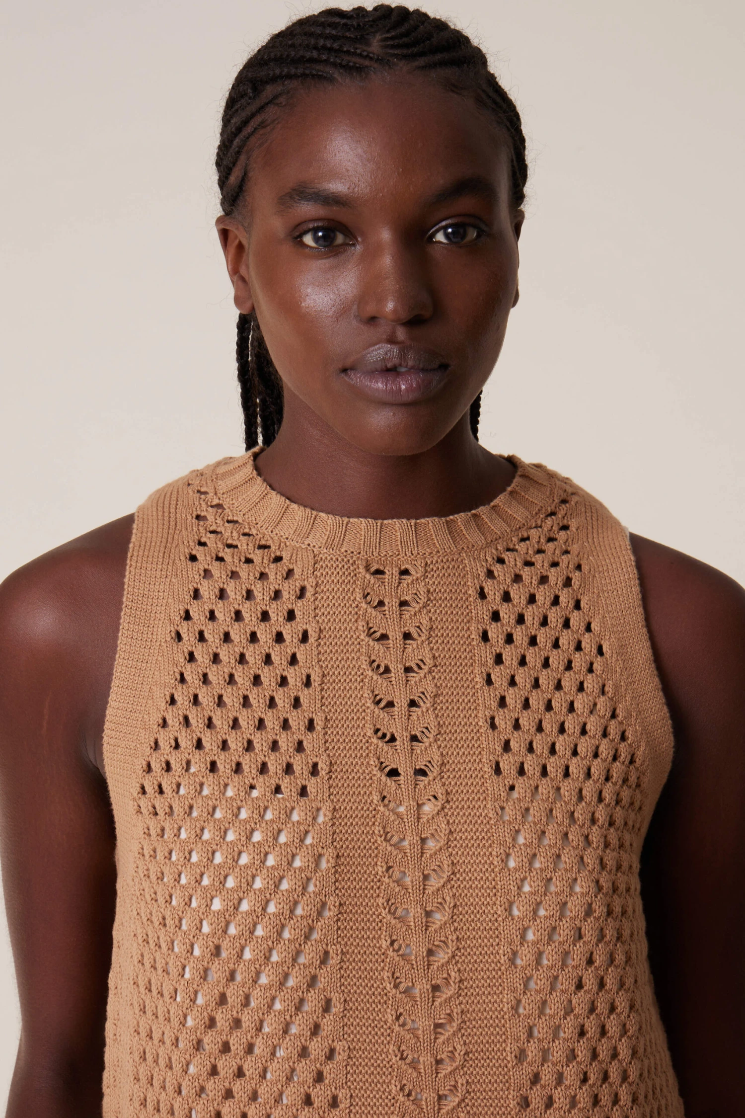 Le pull Maaike Plain est le pull sans manche de la saison. Son aspect crochet lui confère un esprit bohème et vintage. Il est l’allié de la femme Leon & Harper pour jouer la superposition tout au long de la saison.