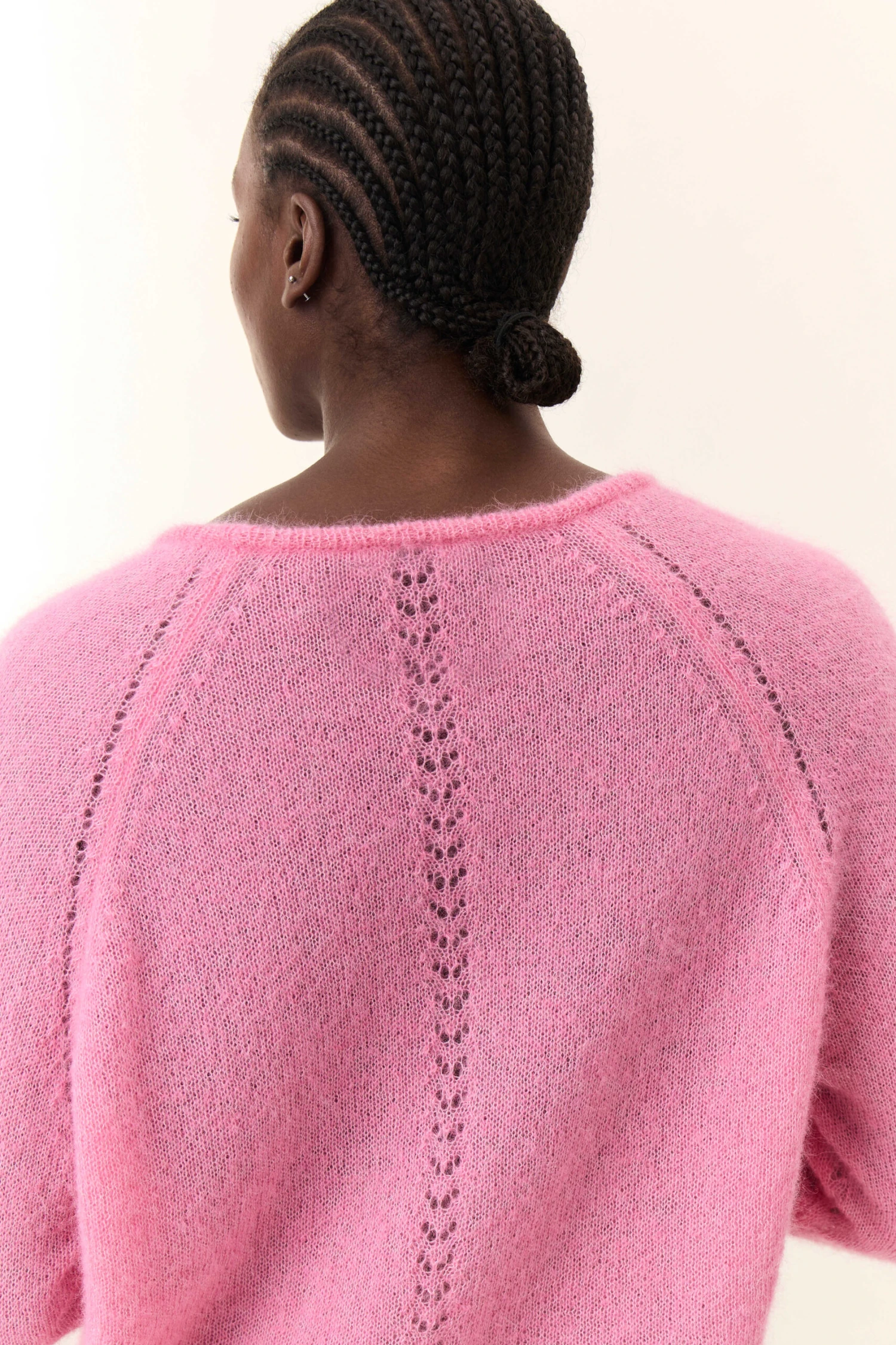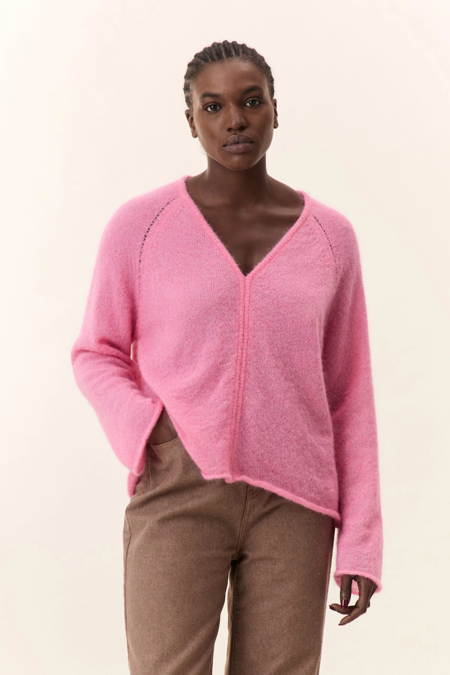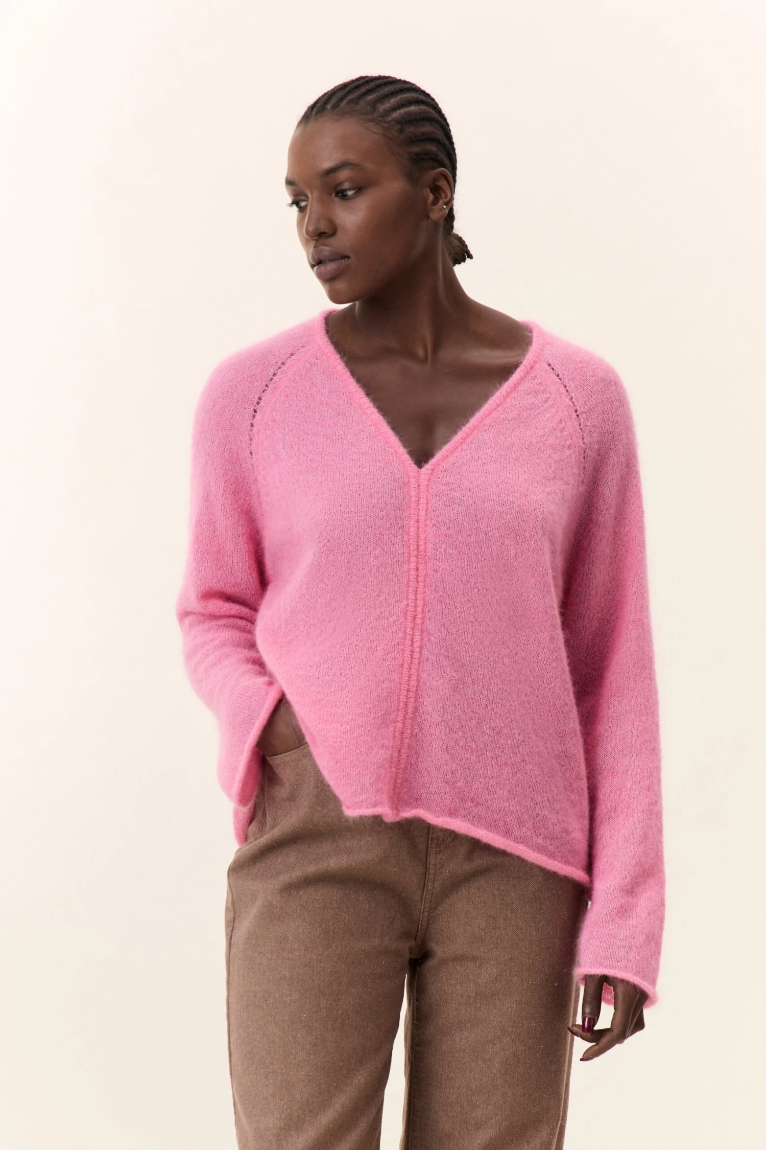 Le pull Margarit Plain incarne l’élégance décontractée avec sa maille délicate et son col V profond. Léger et ultra-doux, il se porte aussi bien ouvert que fermé pour s’adapter à toutes les envies. Son design minimaliste, rehaussé par une couture centrale apparente, en fait un essentiel du vestiaire féminin. Un allié parfait pour superposer les styles avec subtilité.