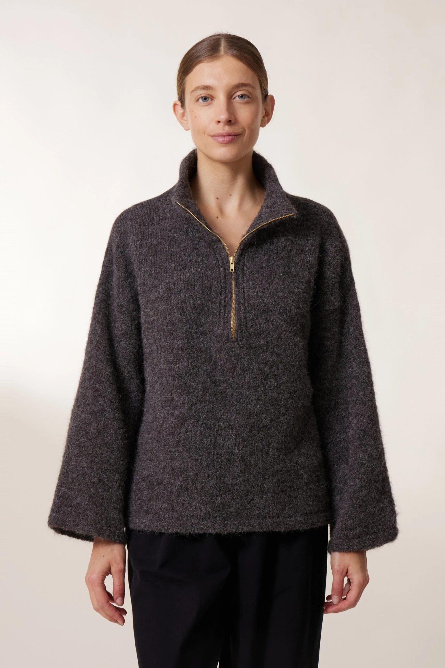 Avec son col camionneur, sa coupe évasée et ses manches trapèzes, le pull Marie PLN est résolument audacieux. Il complétera le dressing d’hiver de la femme Leon & Harper.