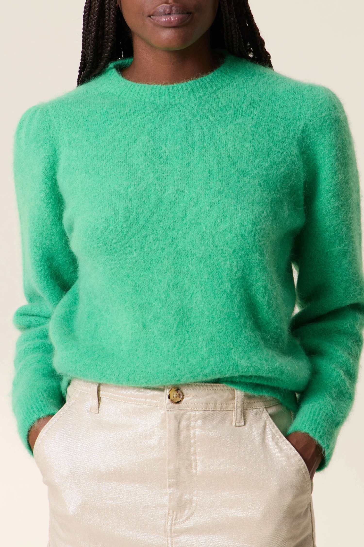 Le pull Mille un indispensable de la saison hivernale avec sa composition en apaga et en laine. Il assure douceur et chaleur à la femme Leon & Harper. Ses épaules légèrement froncées ajoutent une touche féminine discrète.