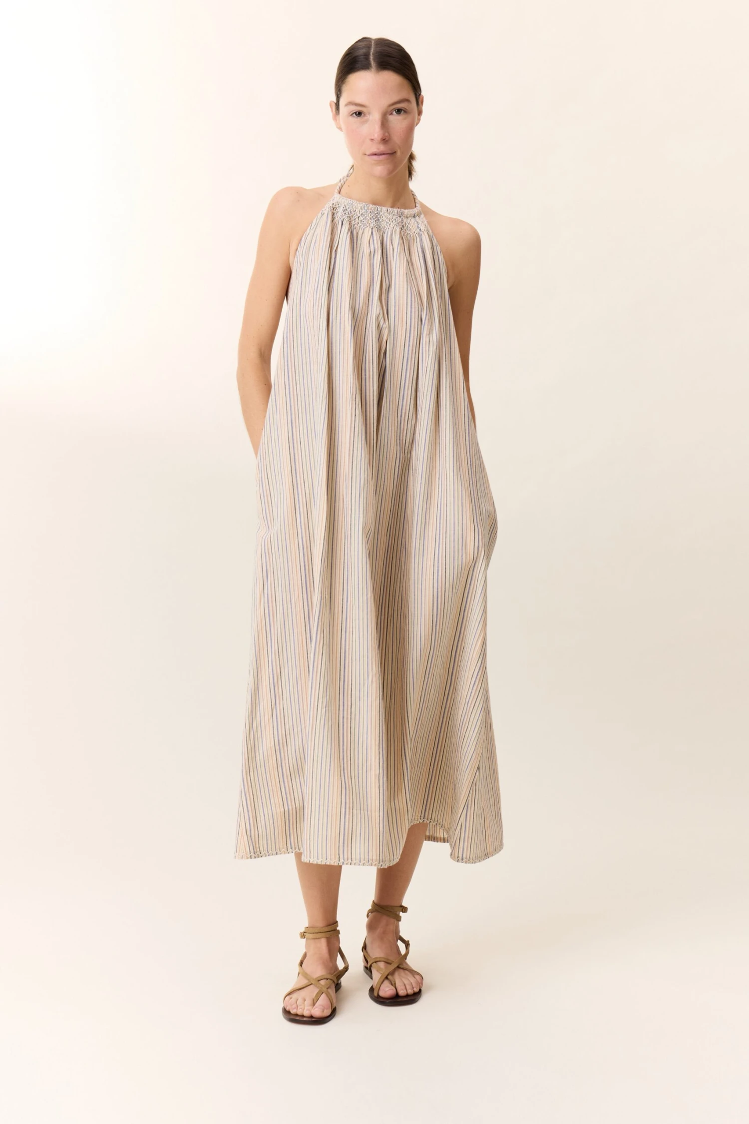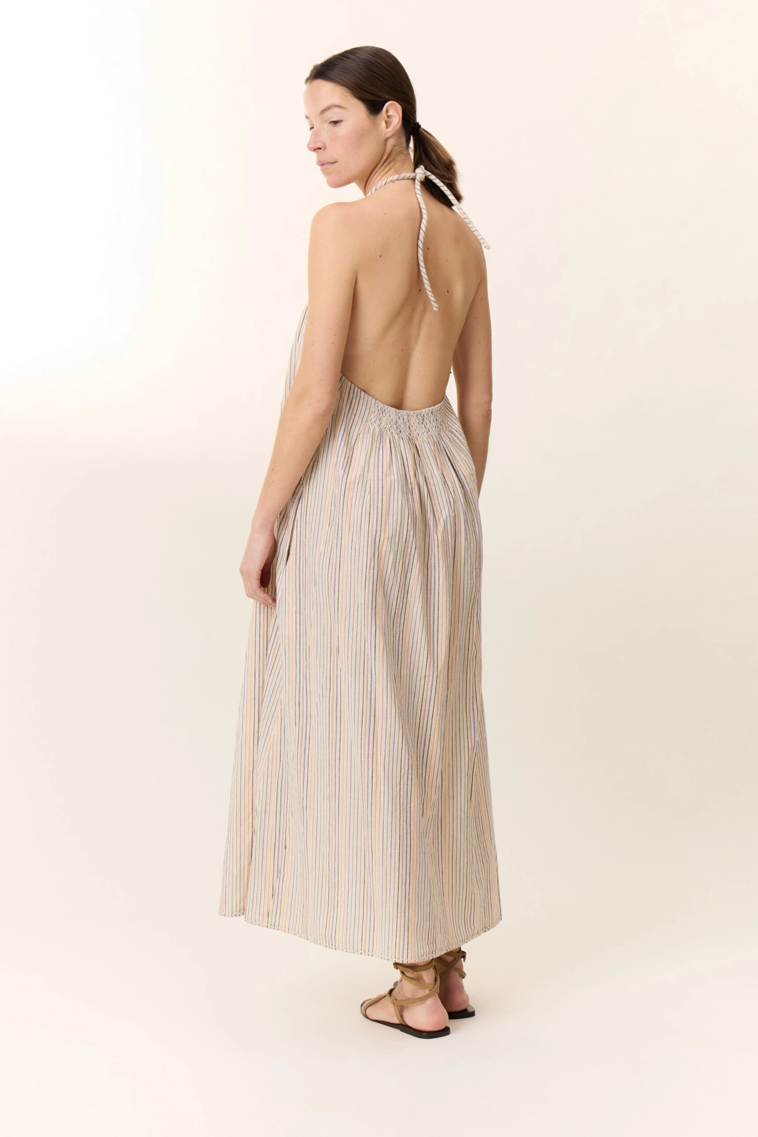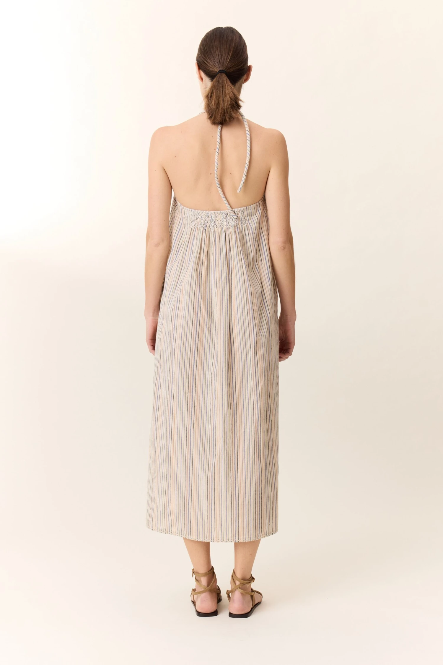 La robe Ramik Multi est une pièce fluide et aérienne, parfaite pour un style estival bohème et décontracté. Son imprimé rayé multicolore, subtil et raffiné apporte une touche de légèreté. C’est la robe idéale pour une escapade en bord de mer ou une sortie estivale. La femme Leon & Harper l’associe avec des sandales et un chapeau pour un look chic et effortless.