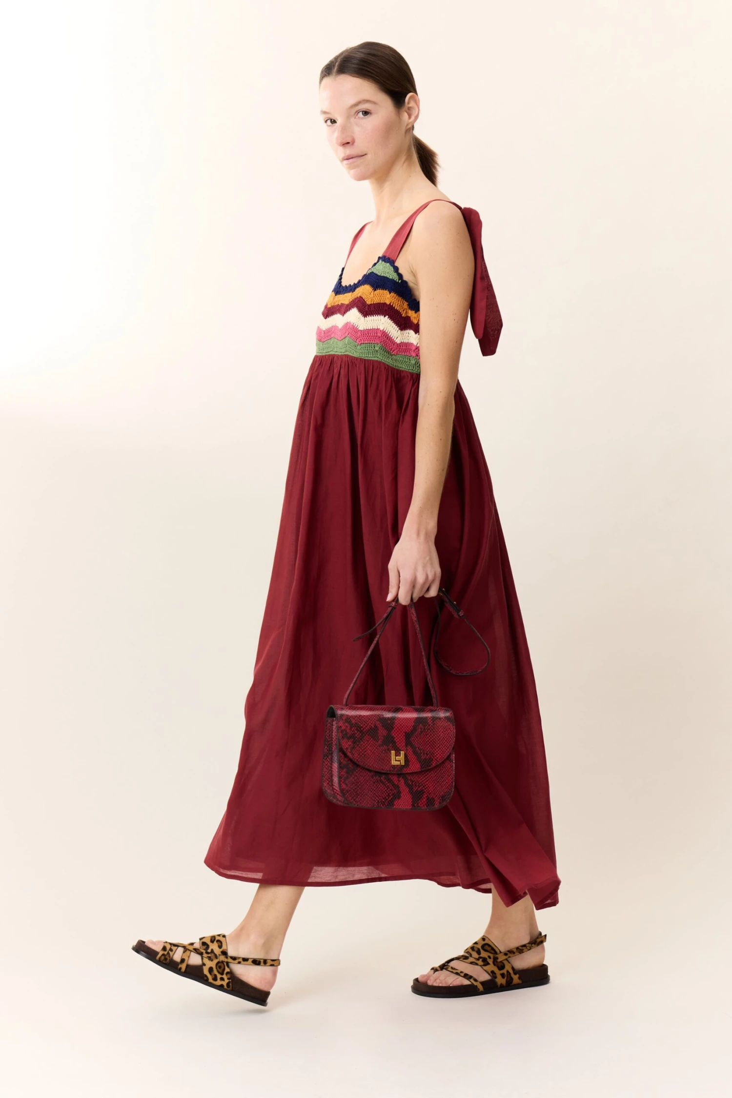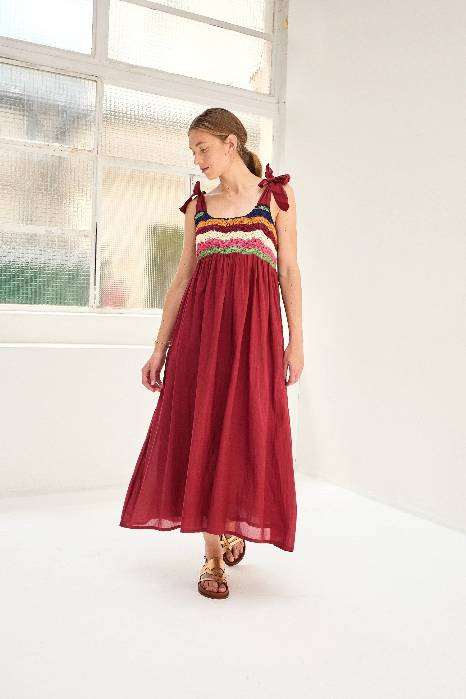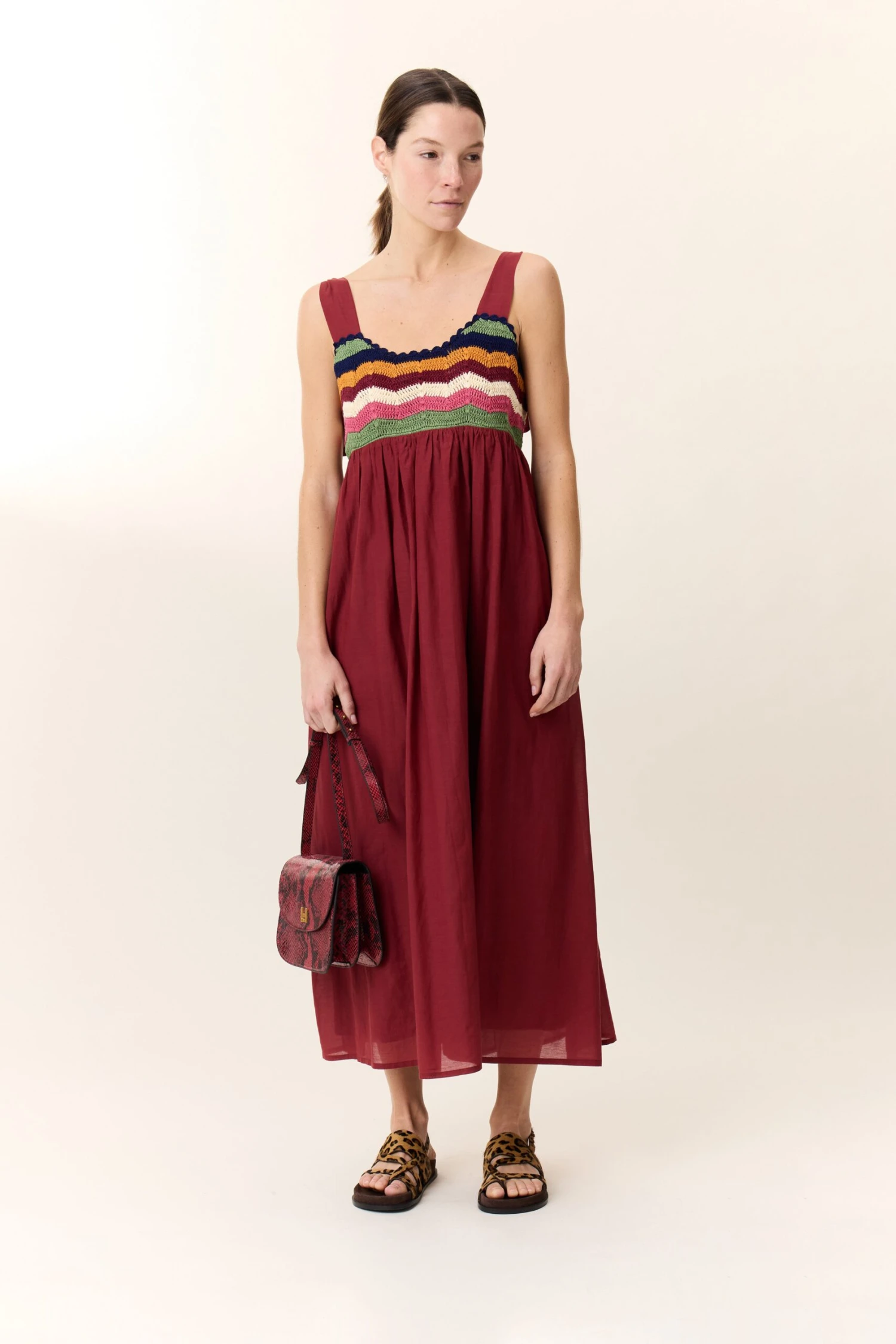 La robe Ricq Crochet se distingue par son jeux de matière avec son plastron en crochet fait main et son voile en coton. Ses jolies bretelles à nouer et son décolleté dégagé subliment la silhouette féminine de la femme Leon & Harper offrant une allure bohème et élégante.