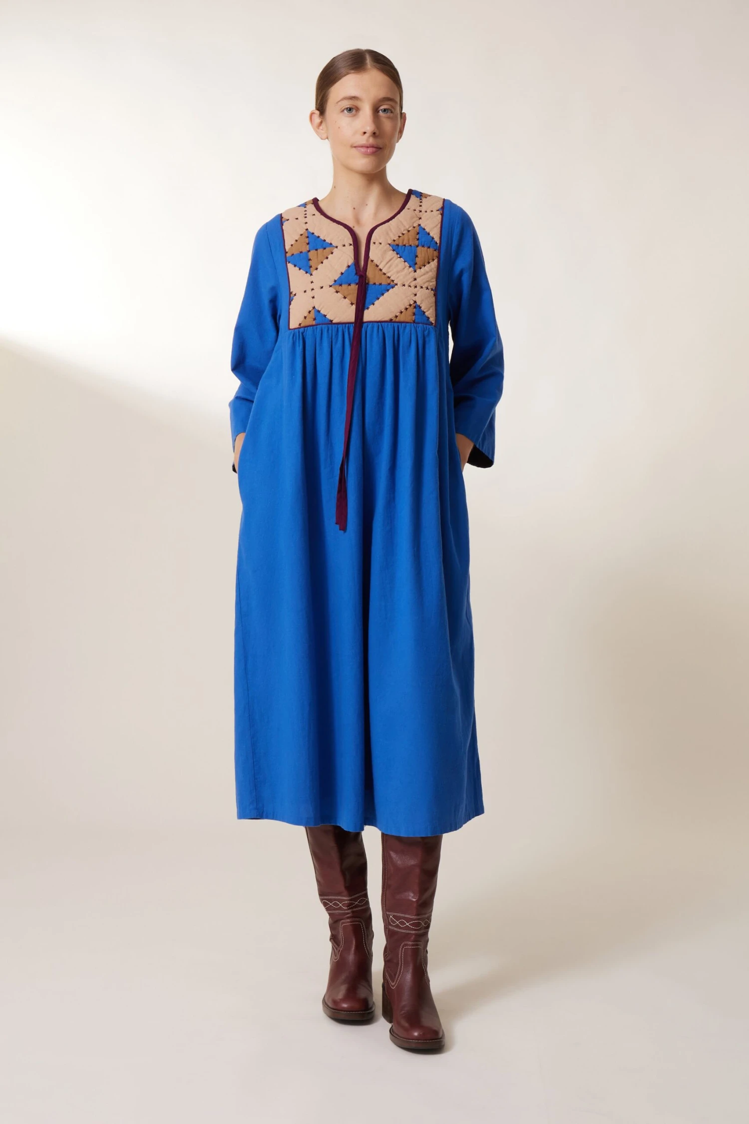 La robe Rom Losange est une pièce incontournable de cet hiver. Avec son plastron en broderies géométriques et ses manches amples, elle apporte une touche d’authenticité et une allure bohème à la femme Leon & Harper pour une allure élégante et décontractée en toute occasion.