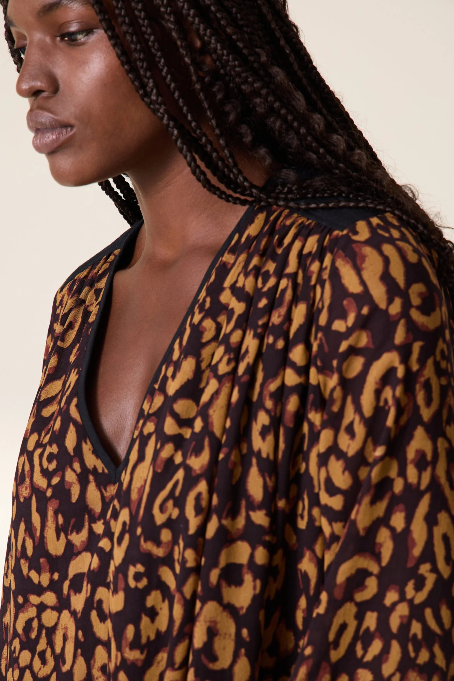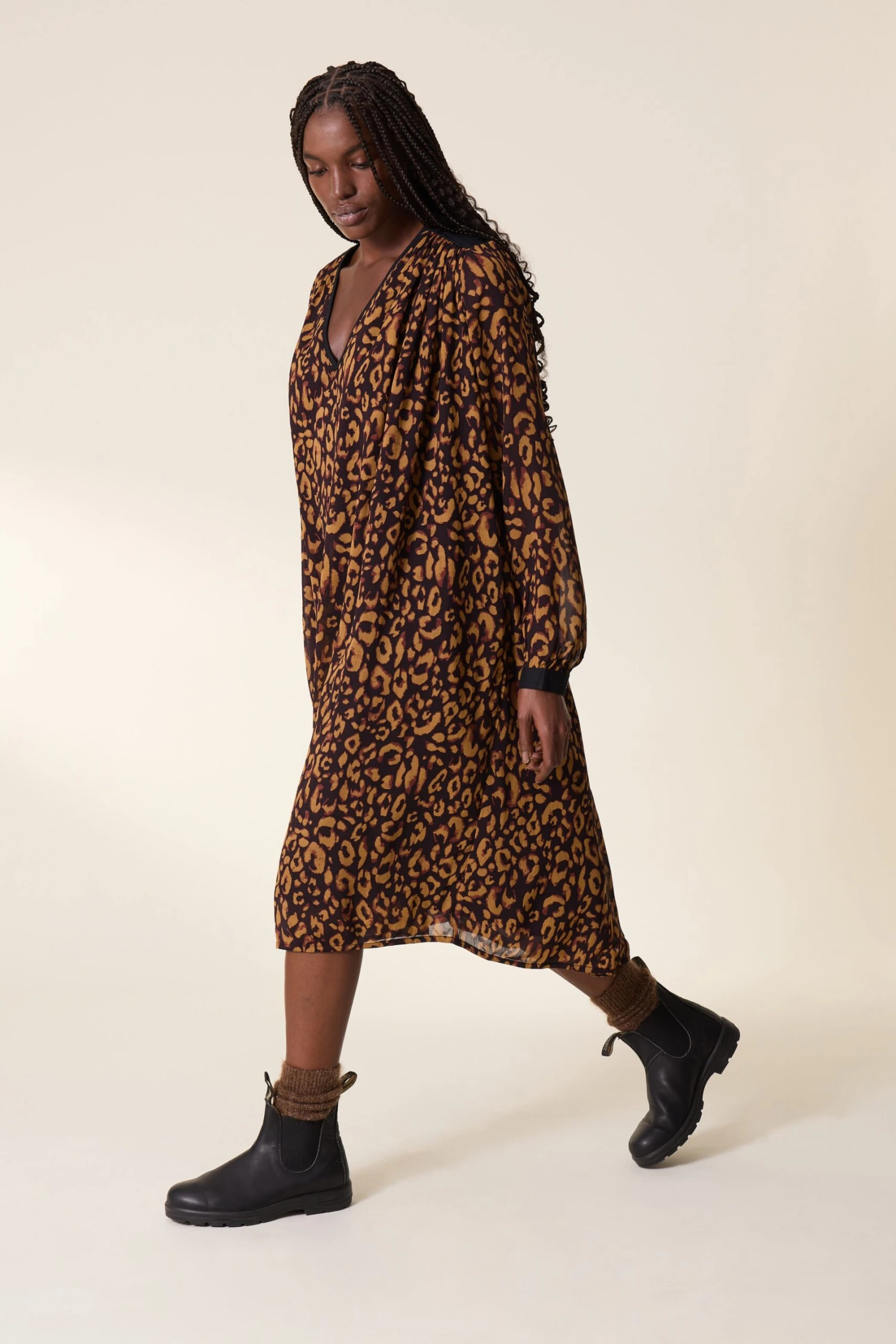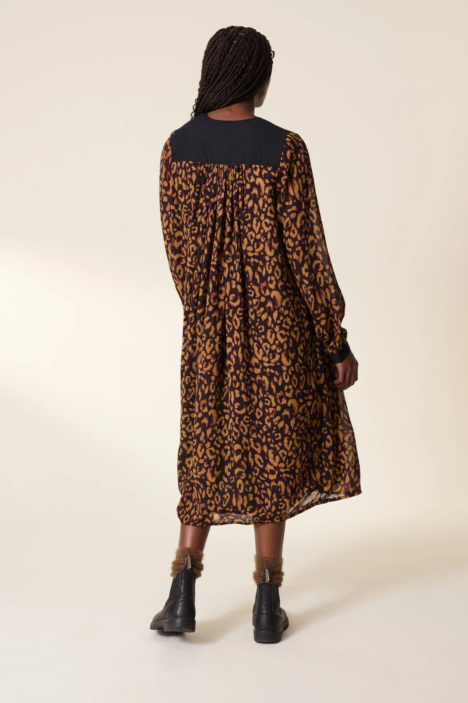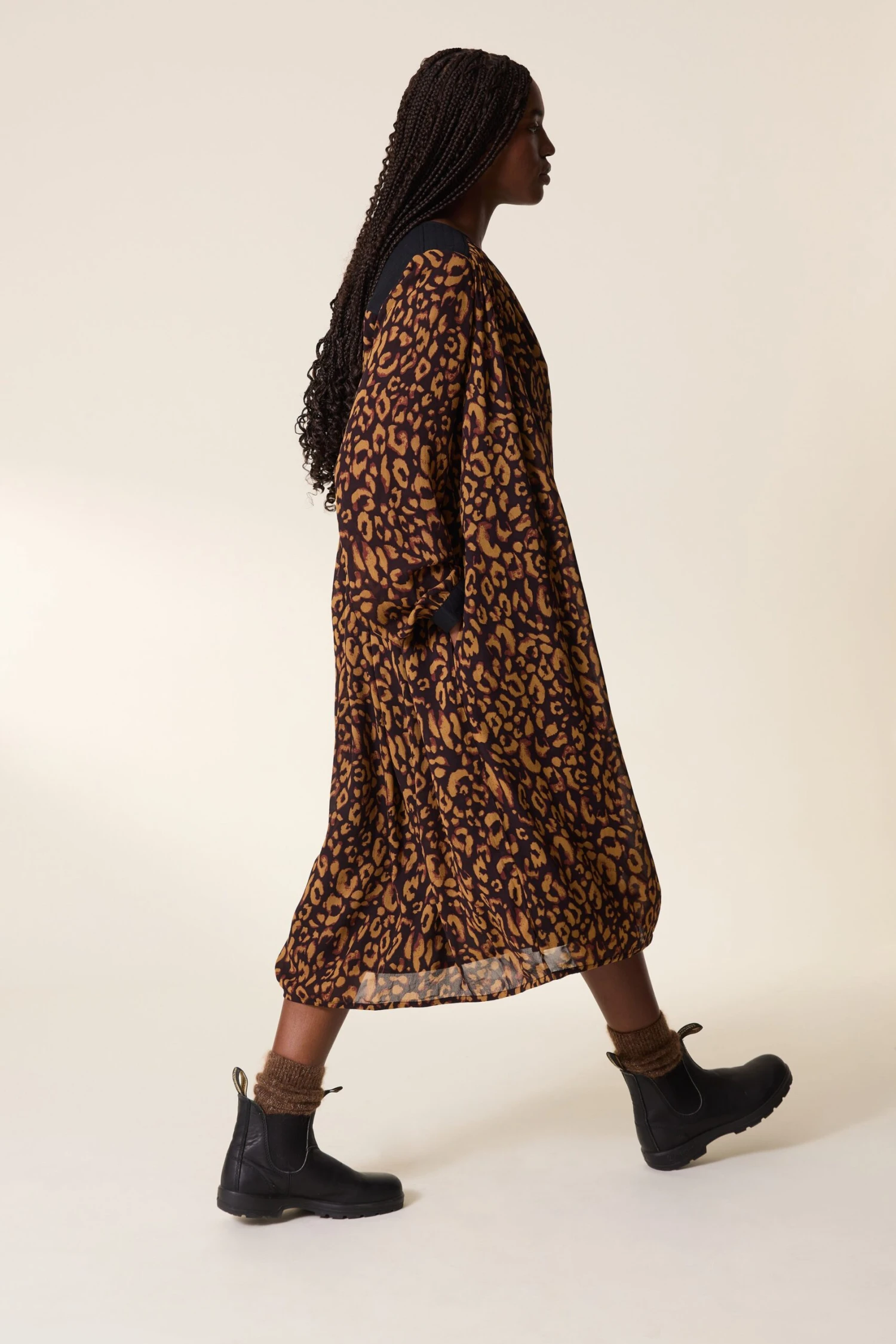Avec son imprimé leopard, la Roni Leo est la robe iconique de cette saison ! Son tissu vaporeux et ses épaules noir dessinent une silhouette féminine et élégante à la femme Leon & Harper.
