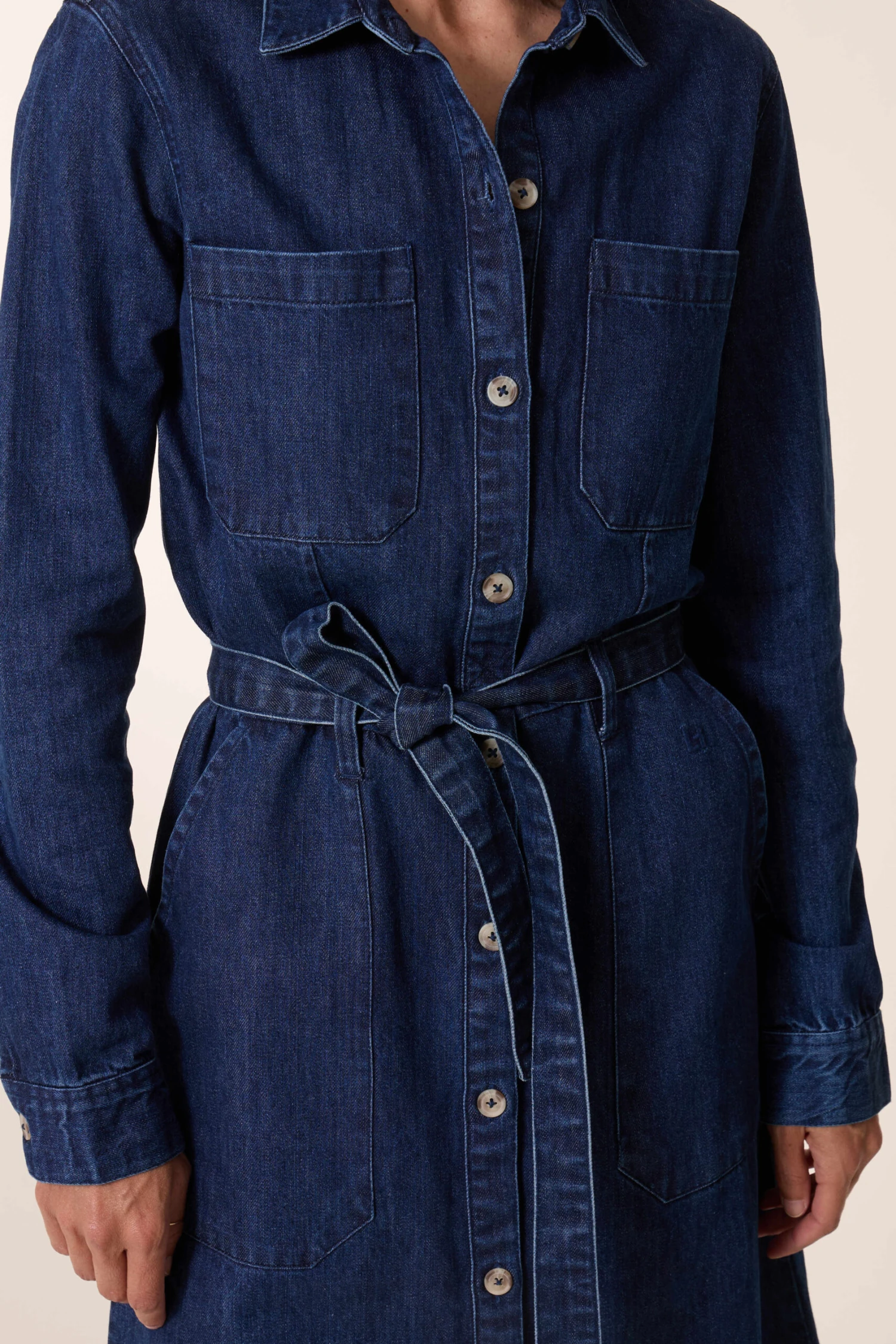 Incontournable du dressing, le denim s’invite sur la robe Ryles PLN ! Sa ceinture marque la silhouette de la femme Leon & Harper pour une allure vintage et féminine.