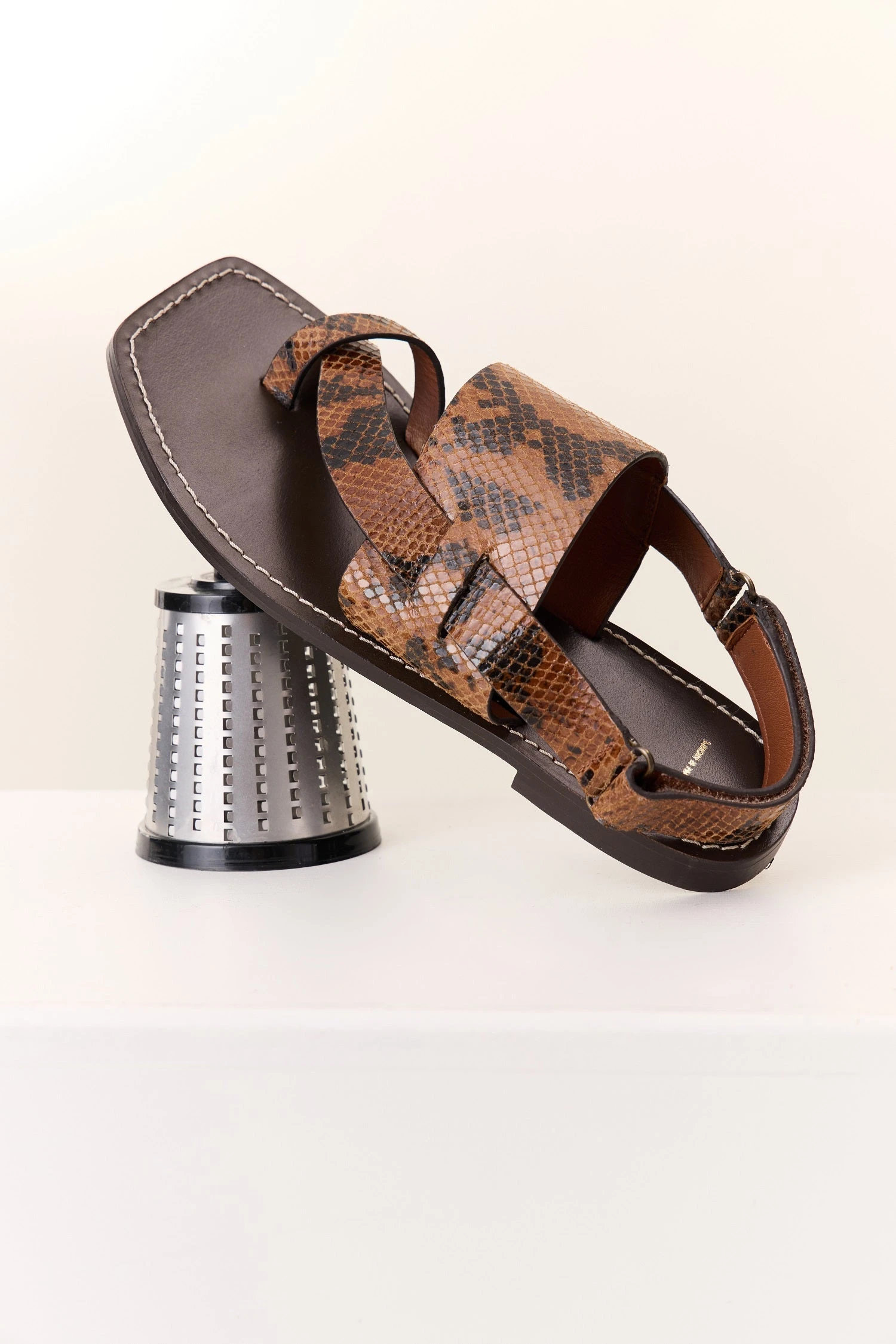 Apportez une touche animale Ă vos looks estivaux avec les sandales Perri Pytn. ConfectionnĂ©es en cuir avec un motif python, elles se distinguent par leurs brides entrecroisĂ©es et leurs semelles plates confortables. Leur design Ă©lĂ©gant et sauvage sâadapte aussi bien aux tenues dĂ©contractĂ©es quâaux silhouettes plus habillĂ©es. Un essentiel chic et intemporel.