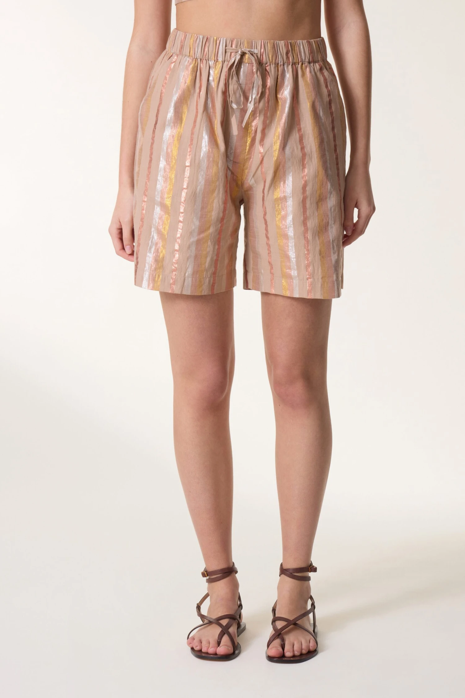 Avec son élastique à la taille et sa légèreté, le short long Quincy Shiny est particulièrement confortable à porter. La femme Leon & Harper opte pour le total look avec la brassière Tippi Shiny ou avec la blouse Clotild Shiny.