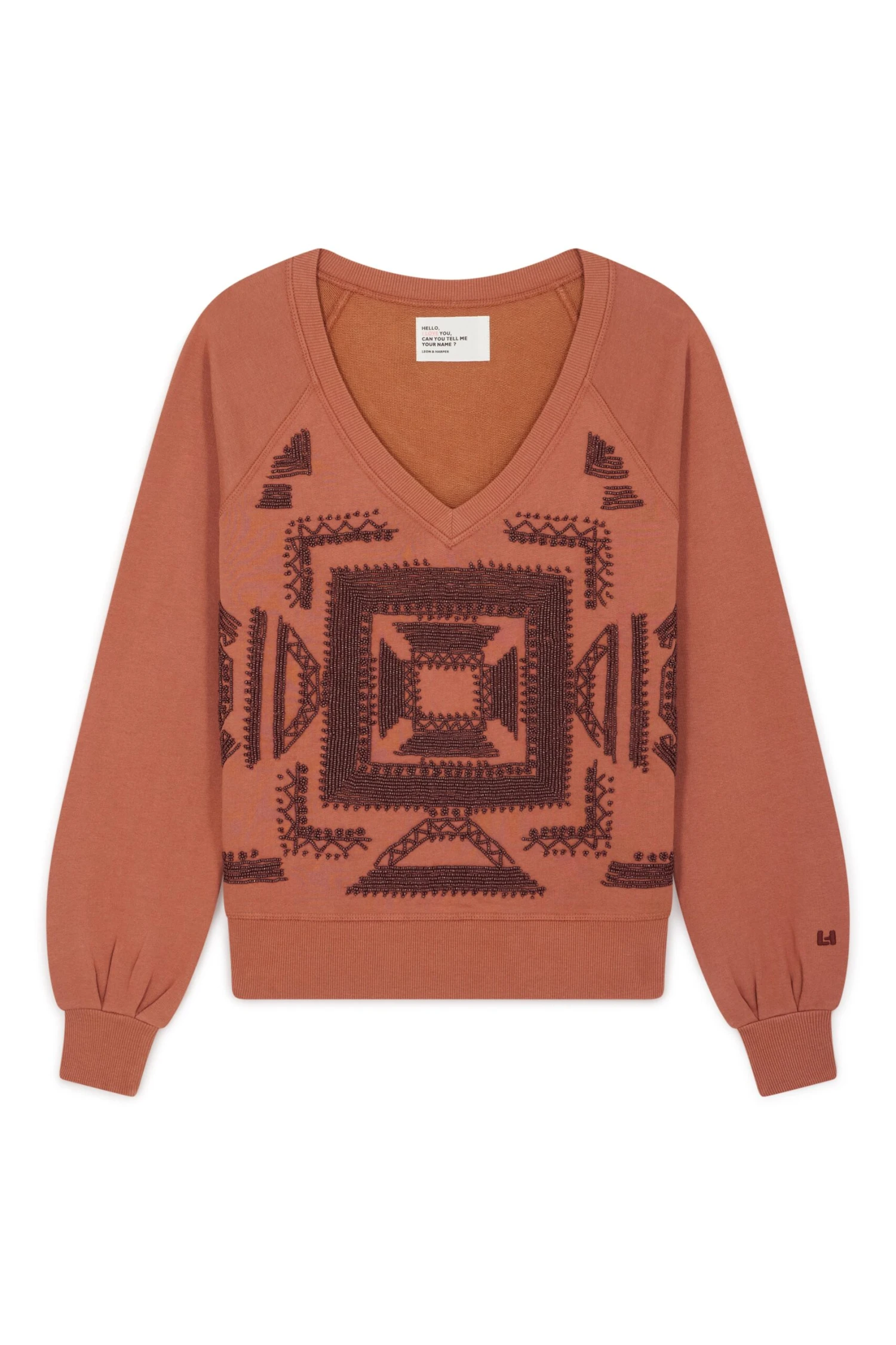 Avec son motif brodé en perles, le sweat Shiva Beads offre une touche ethnique au vestiaire de la femme Leon & Harper. Il est idéal pour les journées fraîches du printemps. Sa coupe loose et son col V s’harmonisent parfaitement avec un jean François et des sabots.