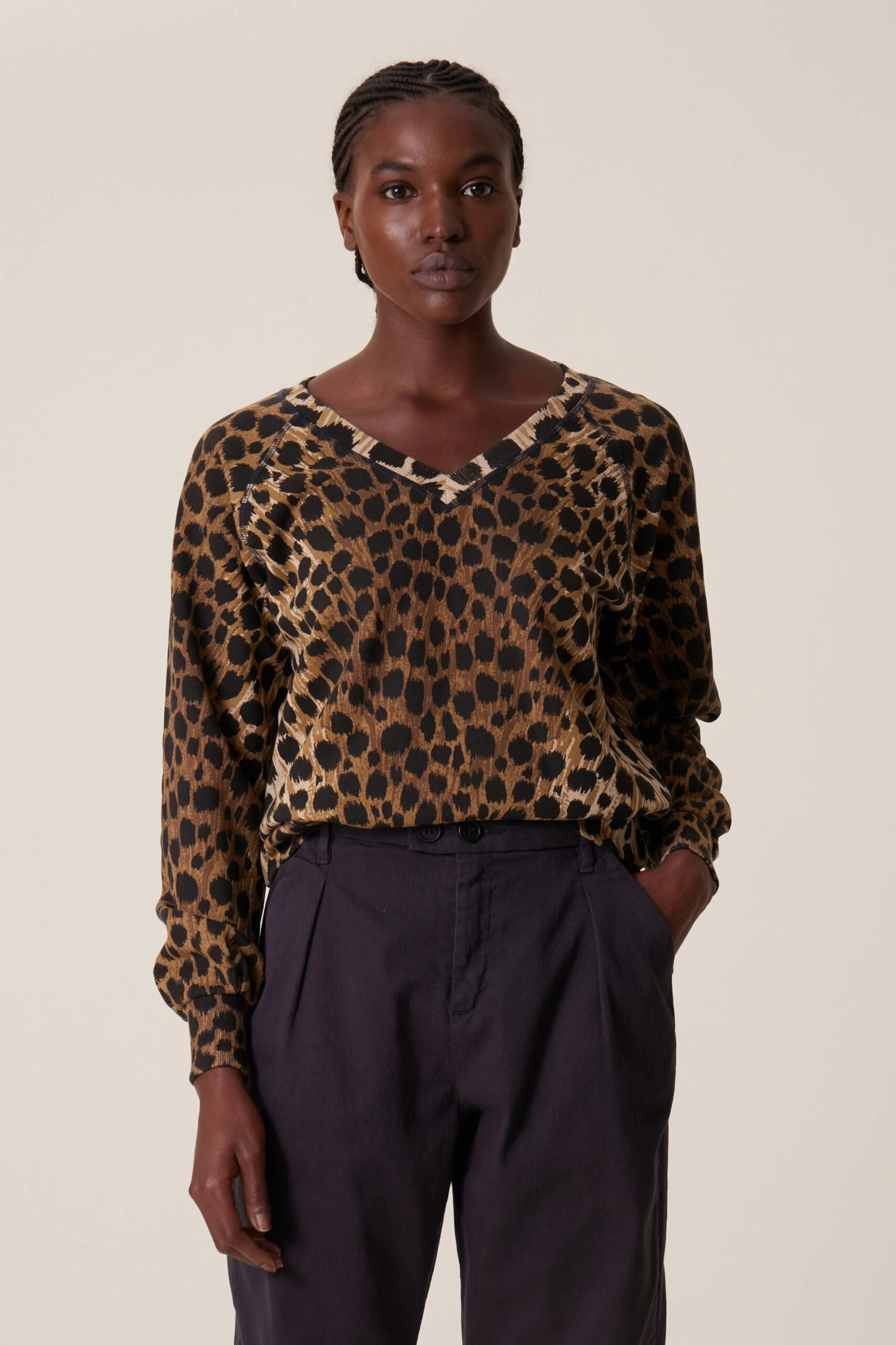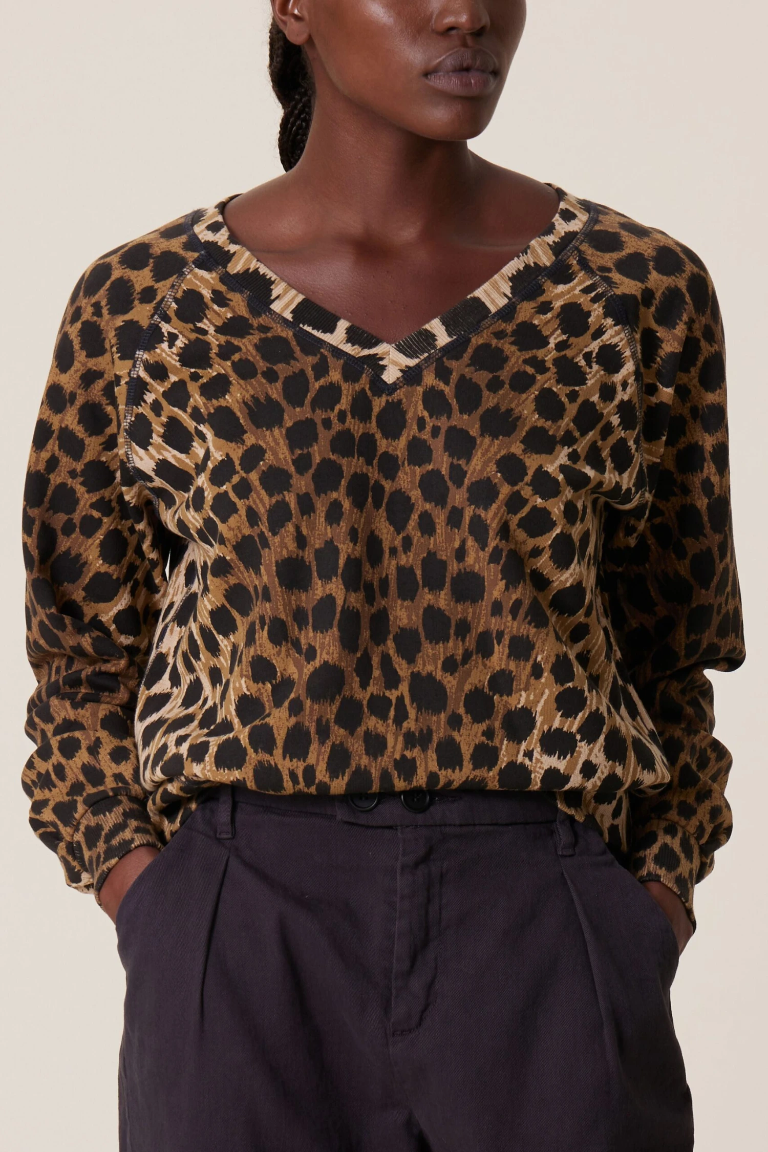 Le sweat Shiva Pnthr adopte le motif léopard préféré de la femme Leon & Harper. Avec son col V, sa coupe droite et ses finitions bord-côte, il est confortable et tendance pour cette saison.