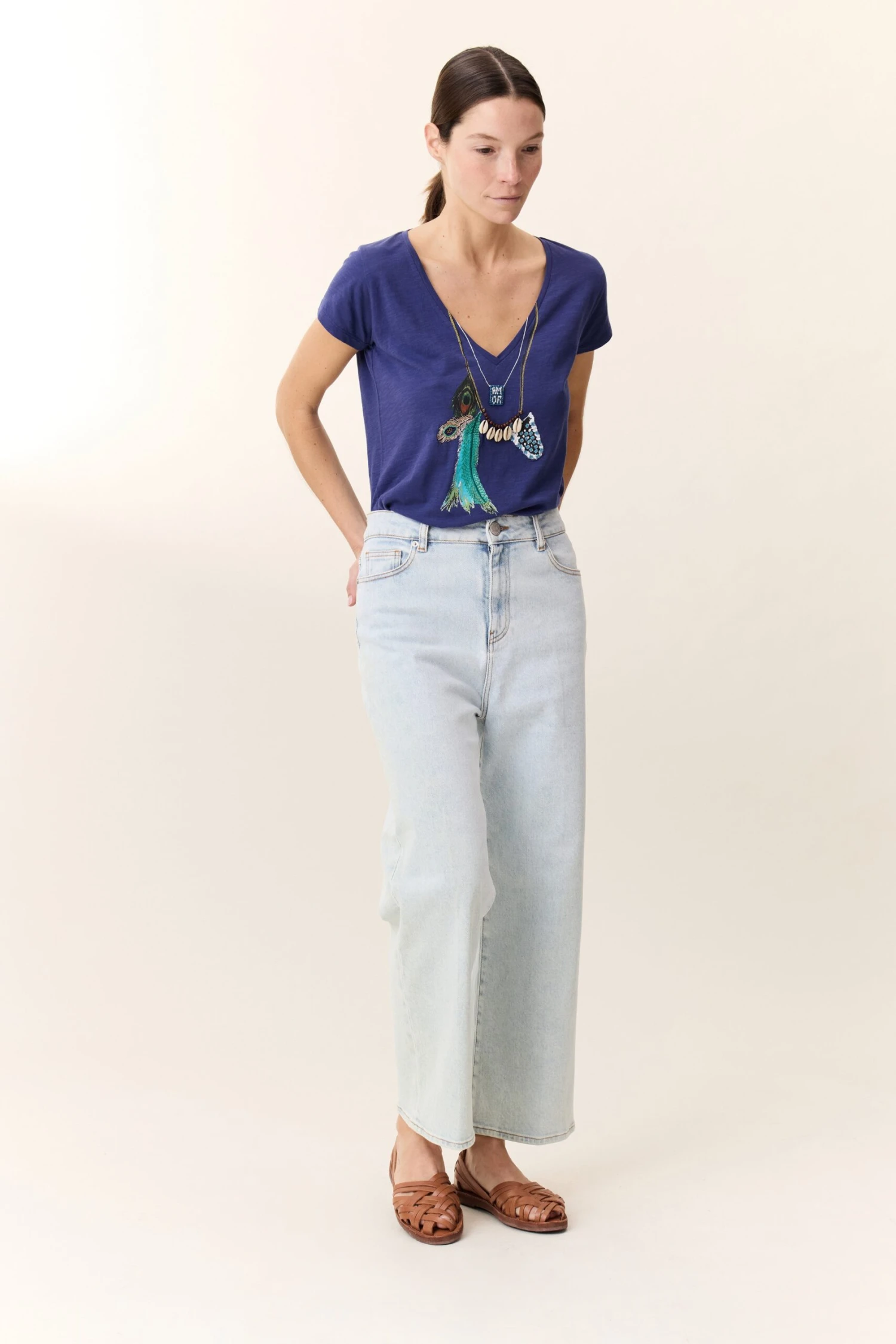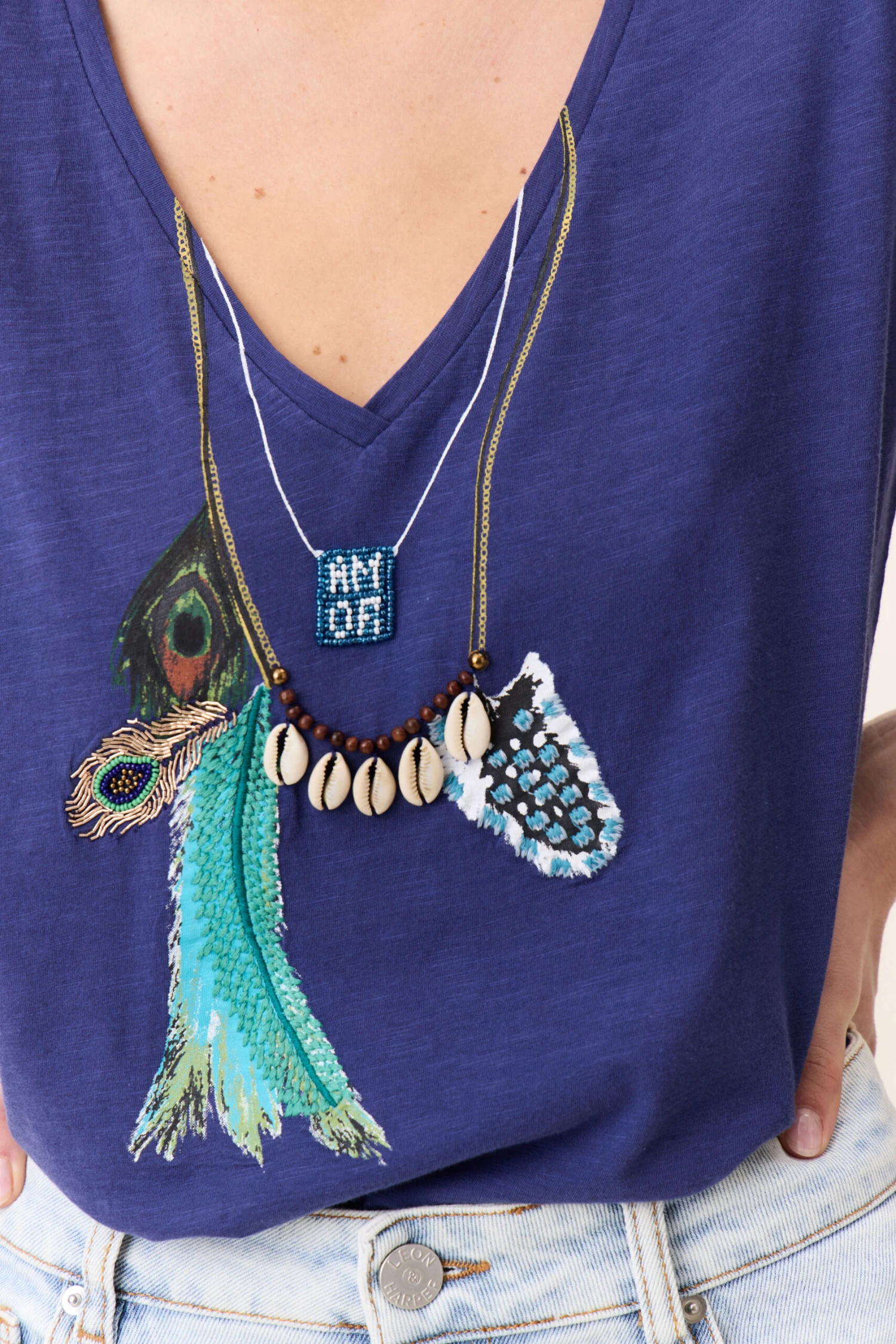 Un brin bohème, un brin espiègle, le t-shirt Tonton Feather joue l’illusion avec son imprimé collier parsemé de plumes et de coquillages. Son col V délicatement échancré et sa coupe fluide en font une pièce légère et facile à porter, idéale pour insuffler une touche d’évasion aux looks du quotidien.