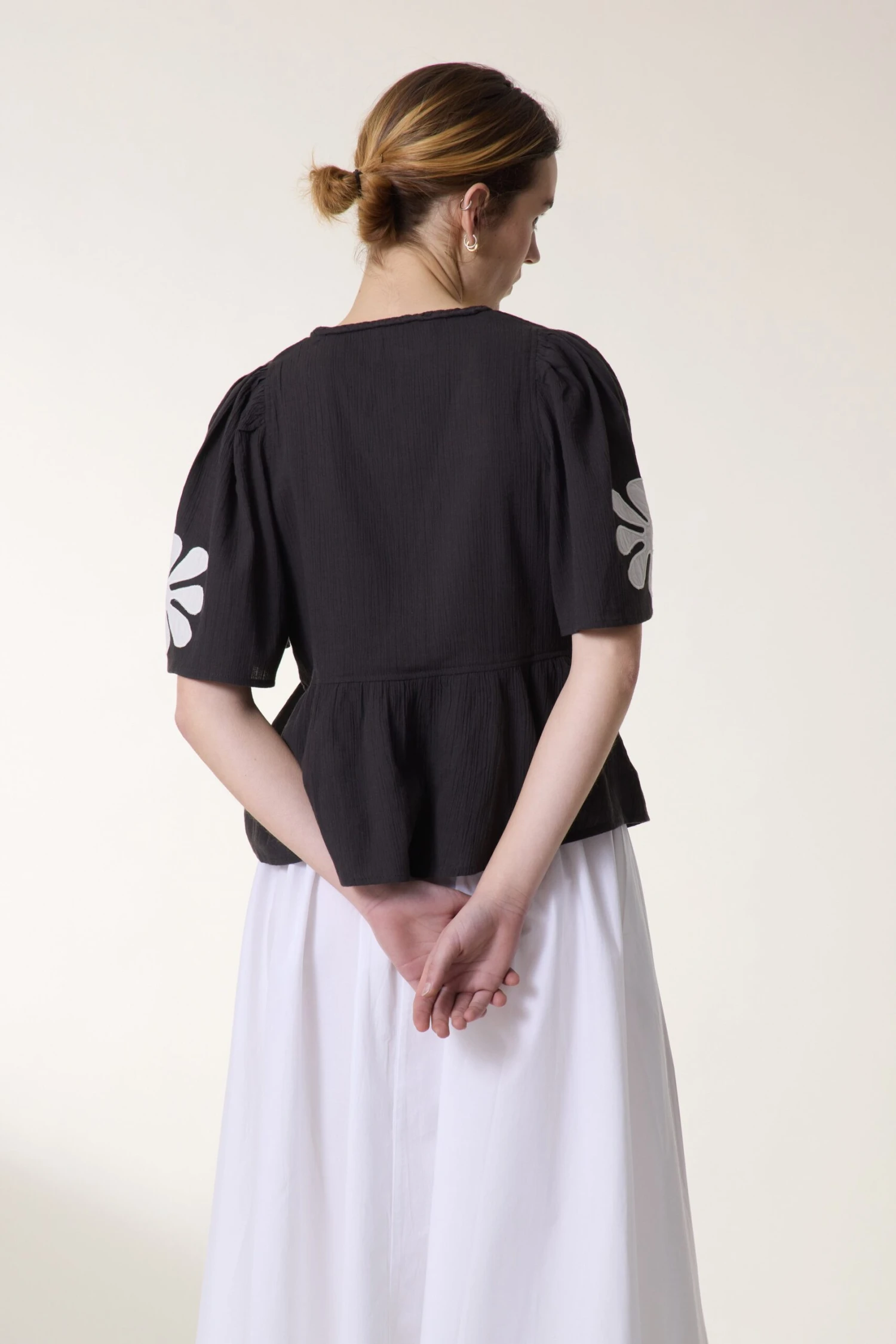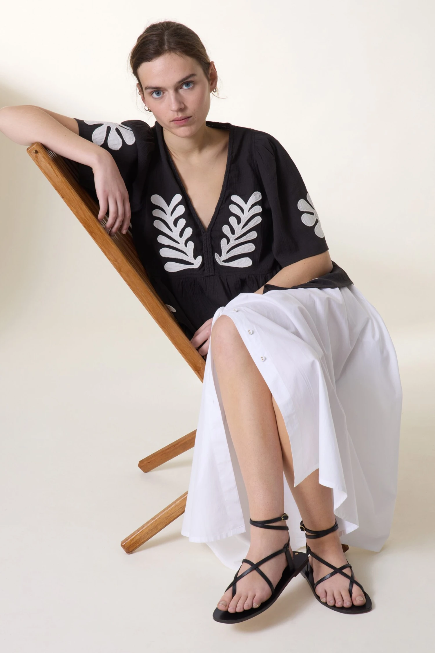 Le top Chloe Birdy est le top parfait de cette collection. Sa jolie forme légèrement évasée, son col V travaillé et ses broderies en font une pièce phare du vestiaire de la saison. Avec un jean, il mettra en avant une silhouette structurée et féminine.