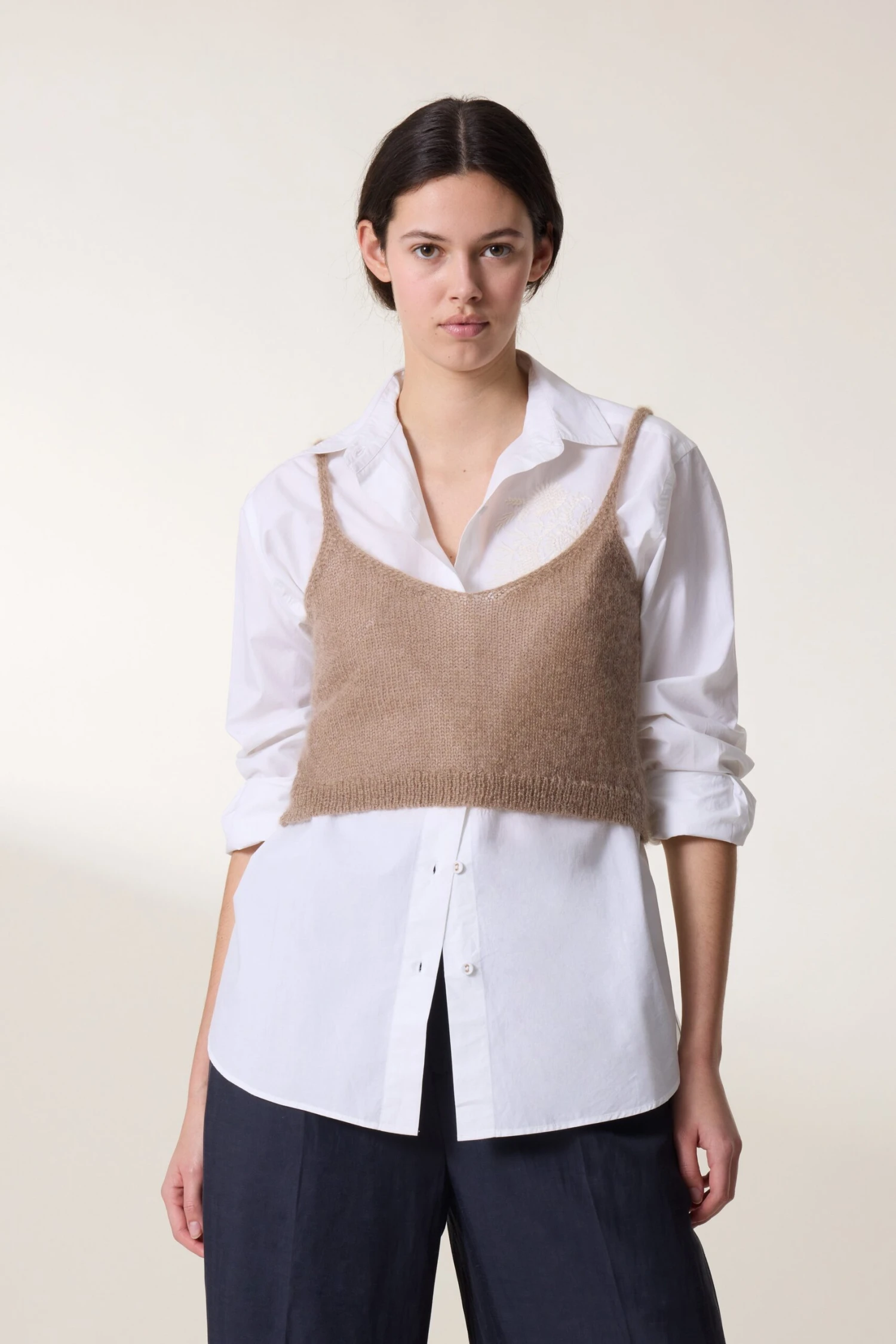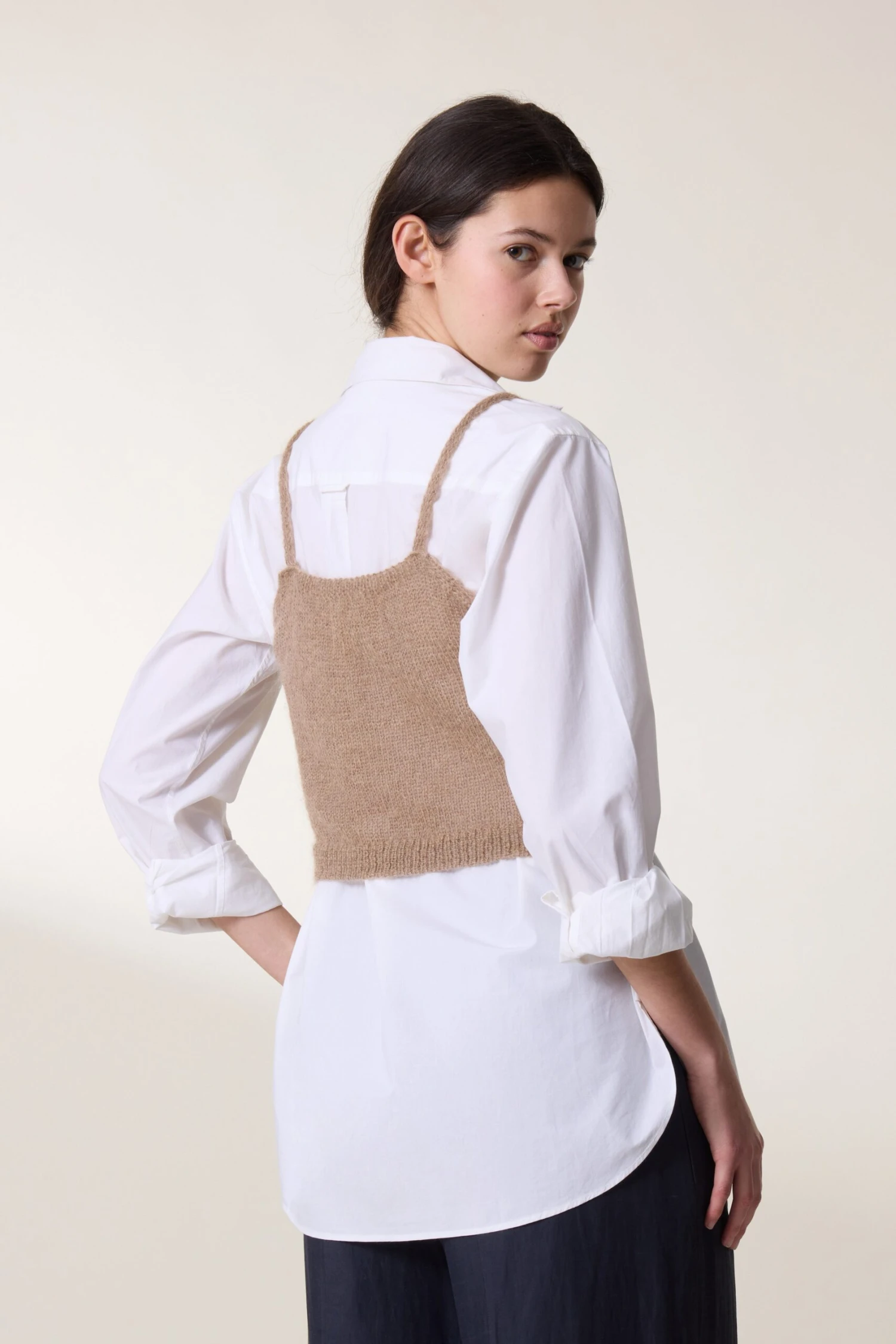 Le pull Mia Plain à bretelles s’accorde avec un joli pantalon léger comme le Prag Plain et la veste Venise Vertic pour le printemps. Pour les chaudes journées d’été, on l’assortit au short Quincy Shiny et un chapeau en paille.