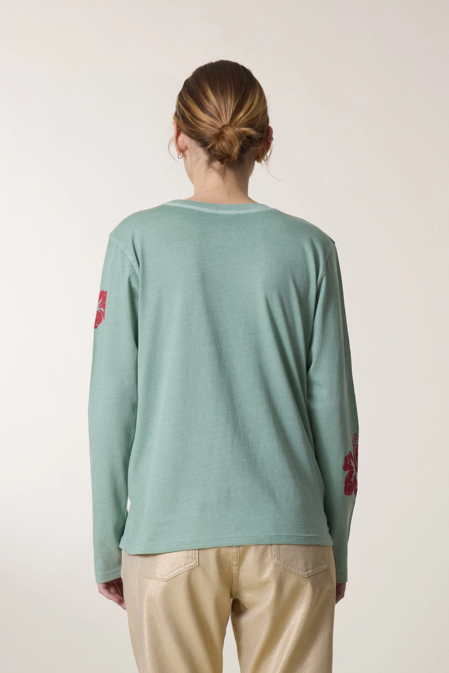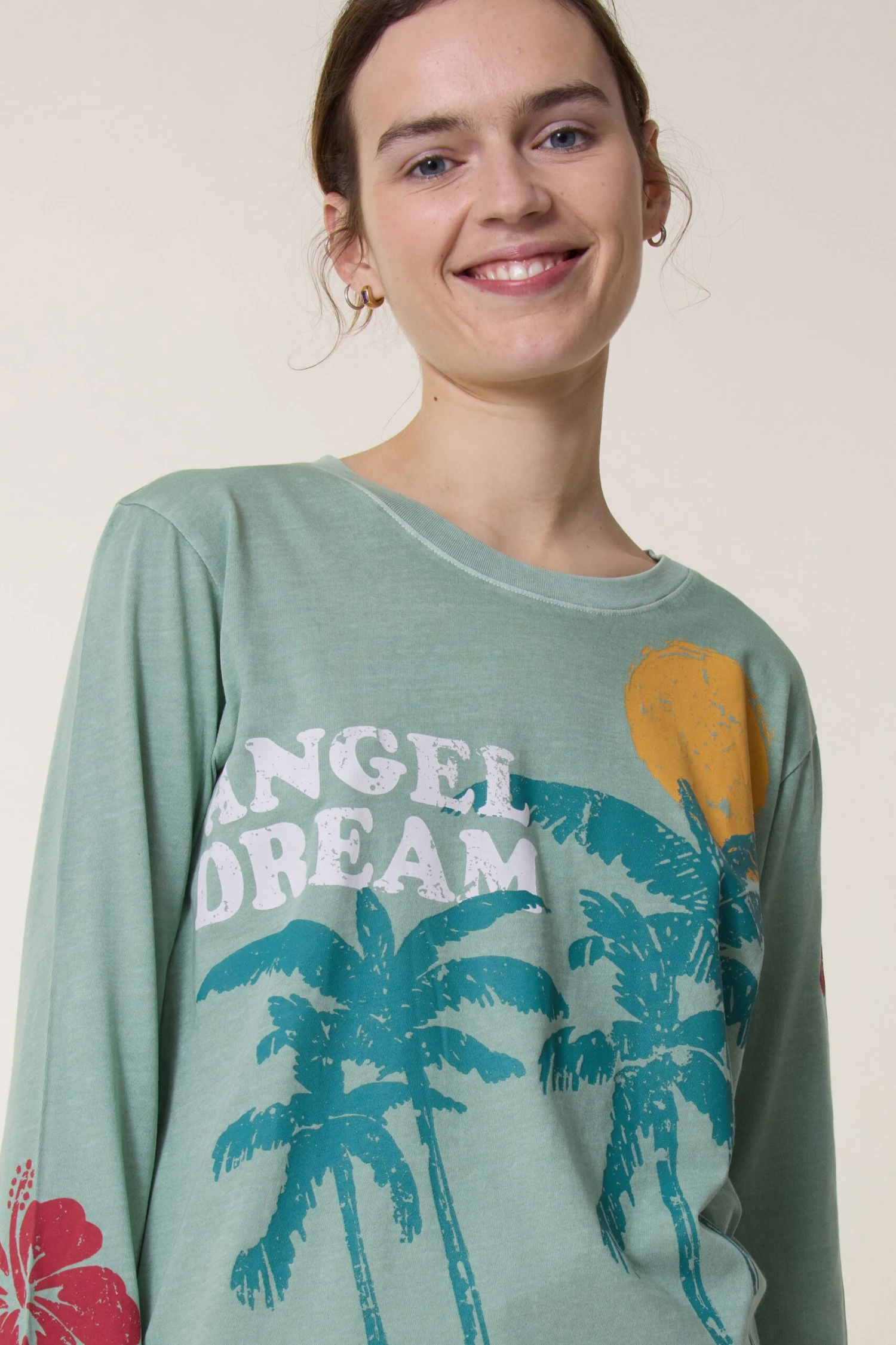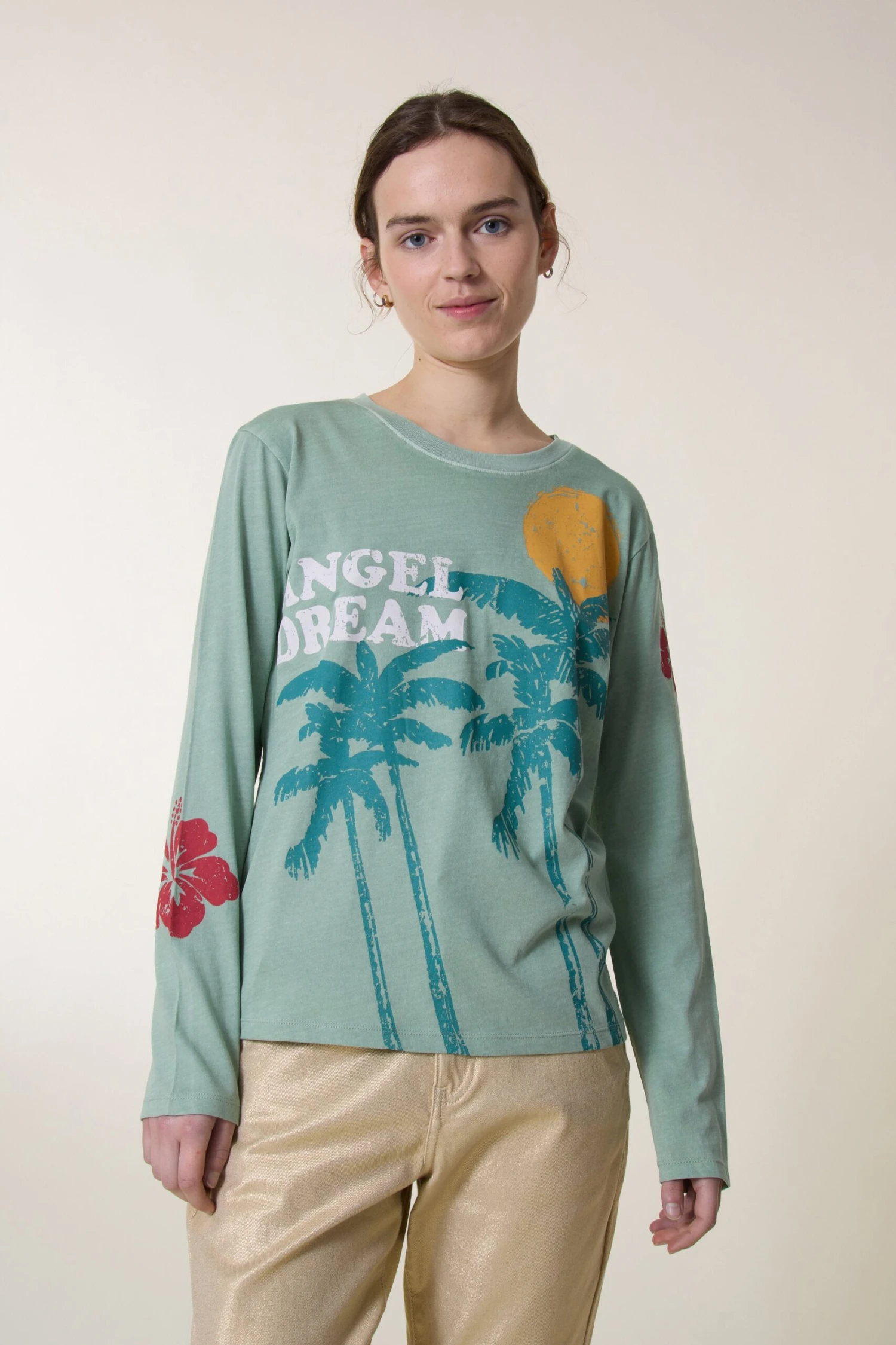 Le t-shirt Tornado Dream est parfait pour les soirées d’été avec son motif rêveur aux airs Hawaïens. Avec son col rond, ses manches longues et sa coupe droite, il offre confort et style pour une ambiance estivale.