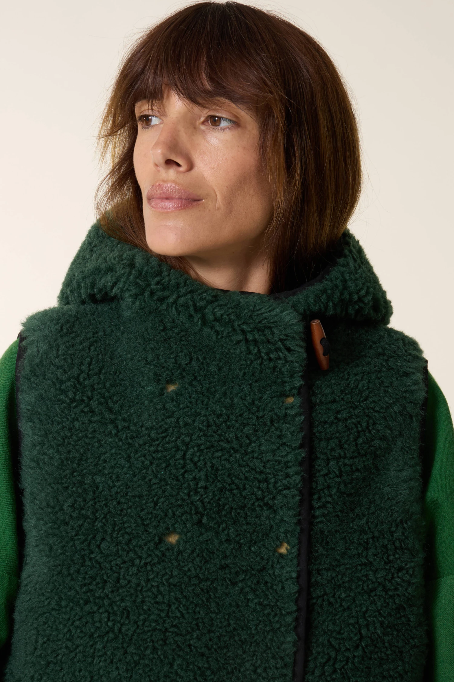 Avec sa capuche et son double boutonnage, la veste en fausse fourrure Villhem PLN allie confort et audace. La femme Leon & Harper la superpose à ses looks d’hiver.