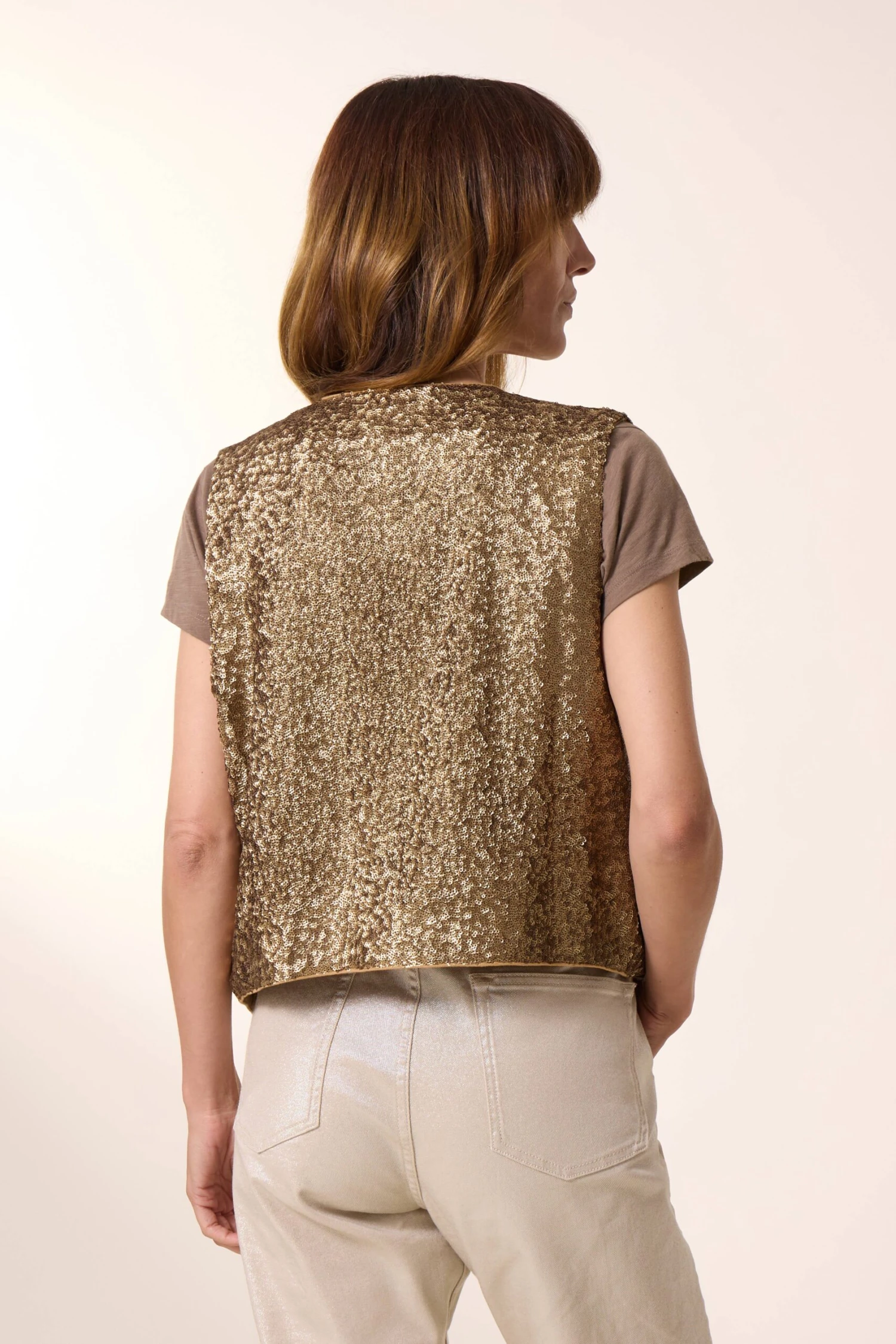Les sequins s’emparent de la veste Vim PLN et illuminent le vestiaire de la femme Leon & Harper. De jour comme de nuit, elle est la touche audacieuse pour rehausser une tenue !