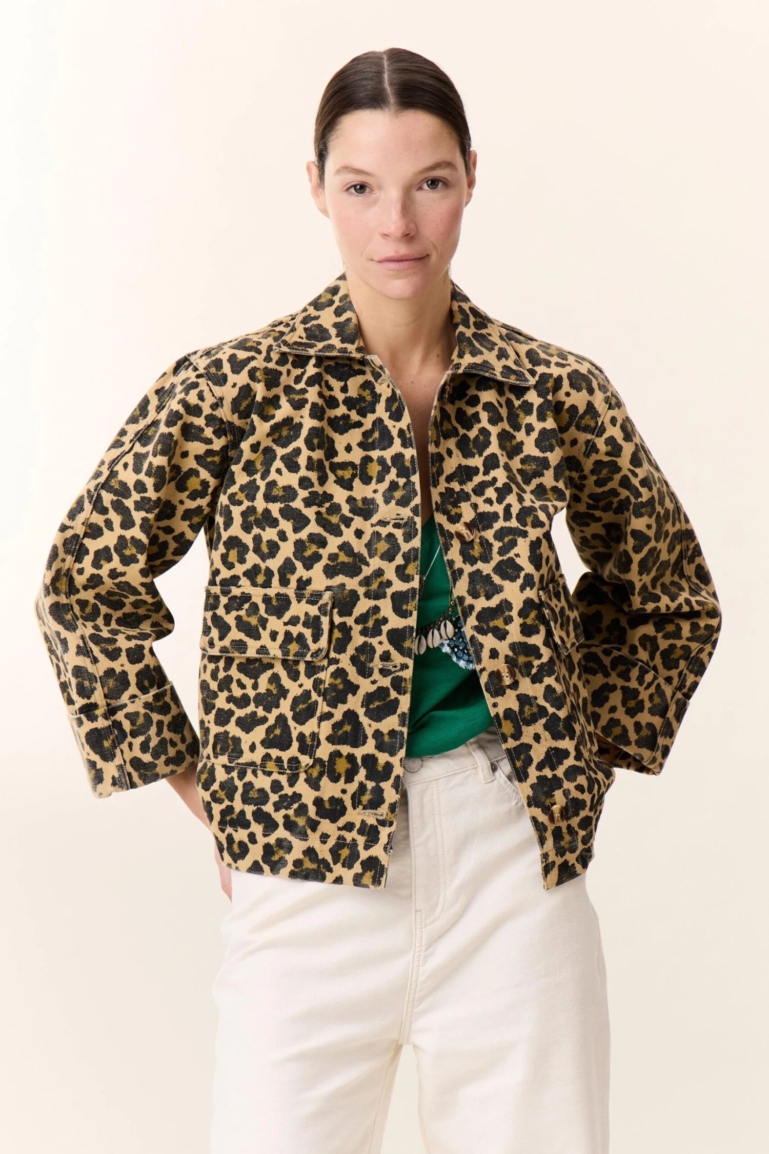 Un imprimé léopard audacieux sur une coupe workwear, la veste Vincy Leo joue sur les contrastes pour un look aussi sauvage que structuré. La bùche légÚrement délavée lui donne un effet vintage irrésistible, parfait pour casser une tenue trop sage. La femme Leon & Harper le porte avec un jean brut pour une allure affirmée ou sur une robe légÚre pour un mix and match réussi.